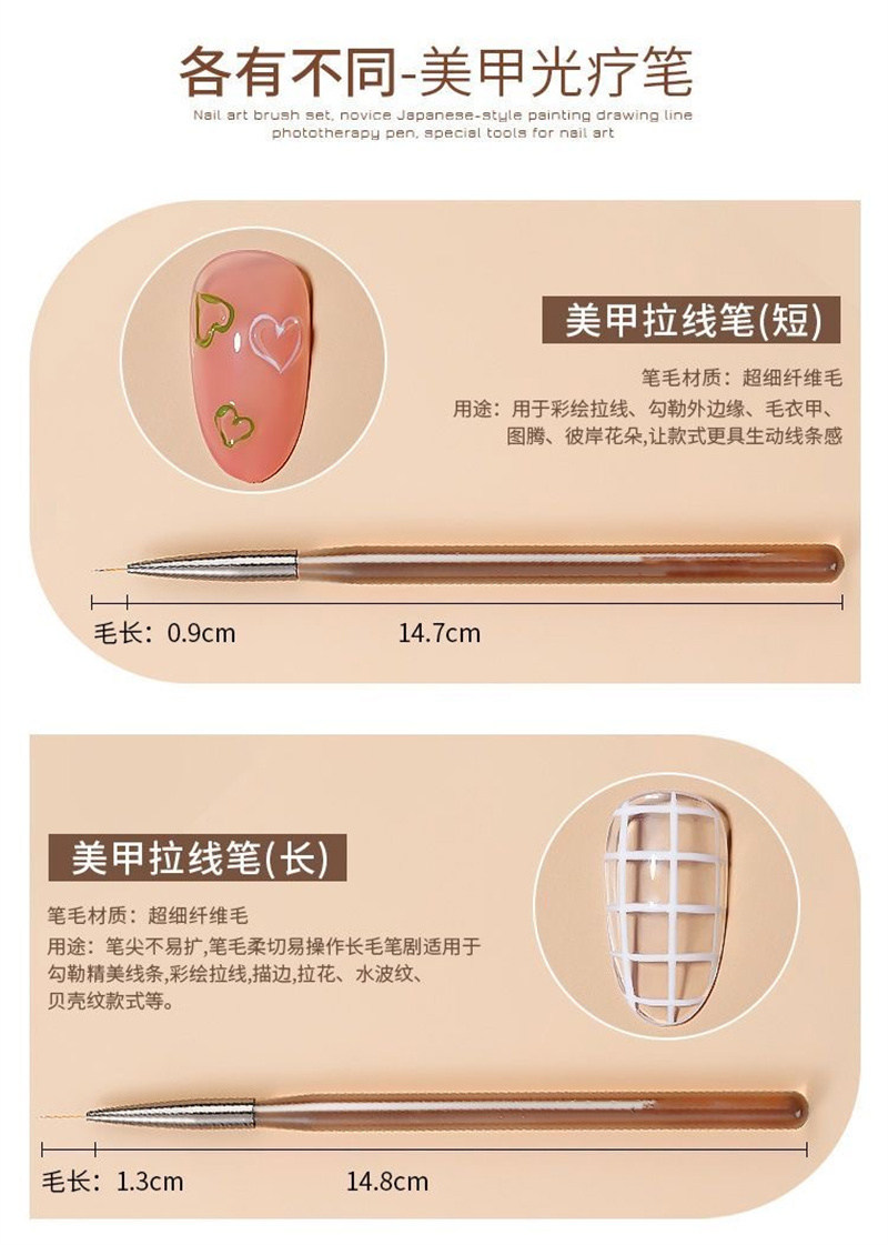 現物卸売り日本式ネイルブラシセット光治療ペンの線引きペンの色絵ペンのネイル専用工具
