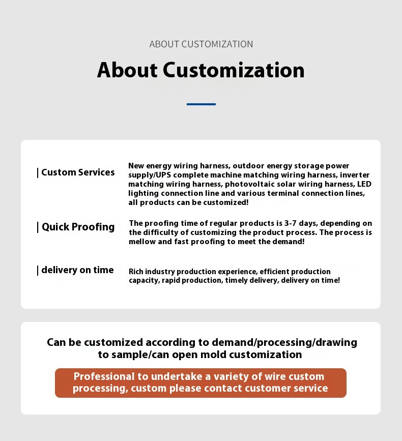The company provides customized wiring harness solutions for energy storage power supplies and start-up power supplies to ensure efficient operation and safety of power systems. Products are widely used in home energy storage, industrial energy storage and emergency power supply and other fields.