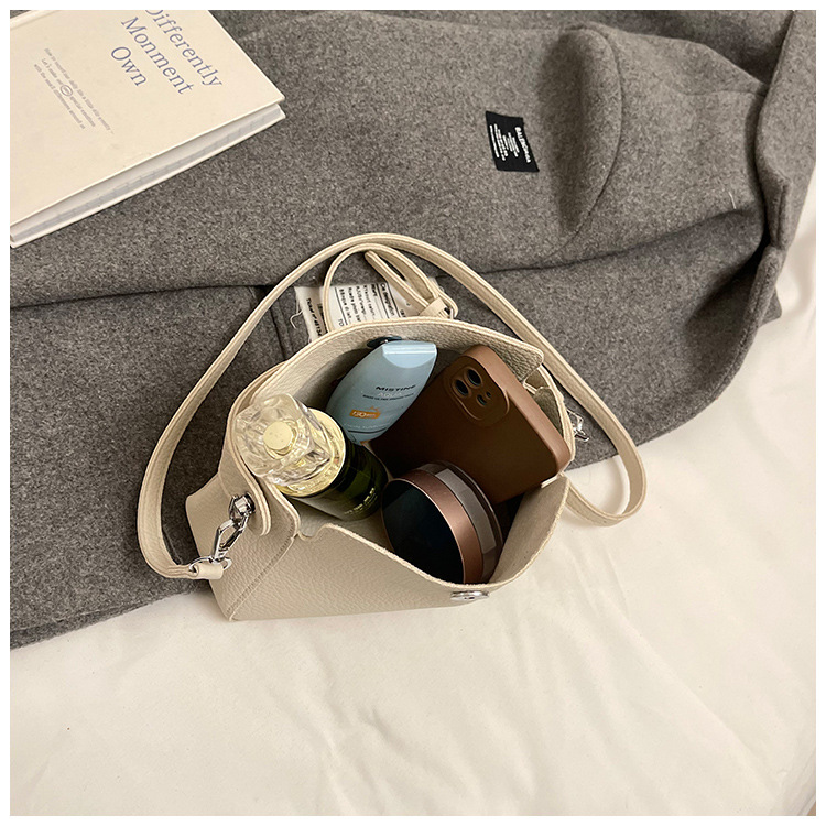 秋季荔枝纹软皮水桶包包女气质设计感大容量子母包通勤百搭手提包