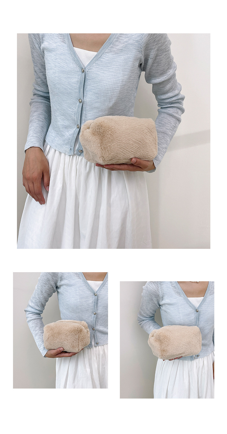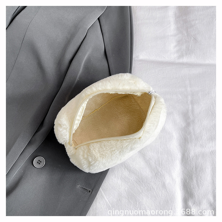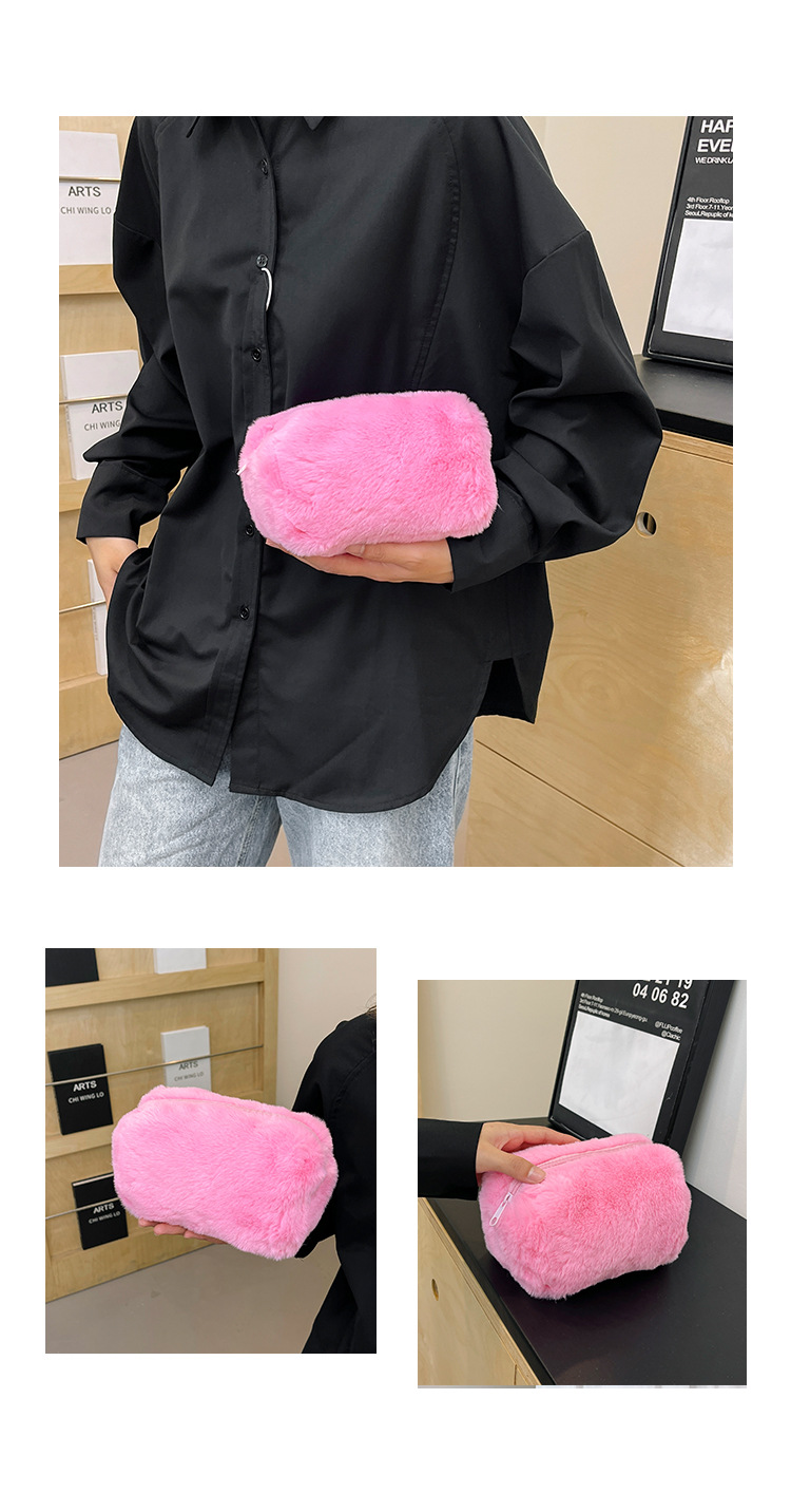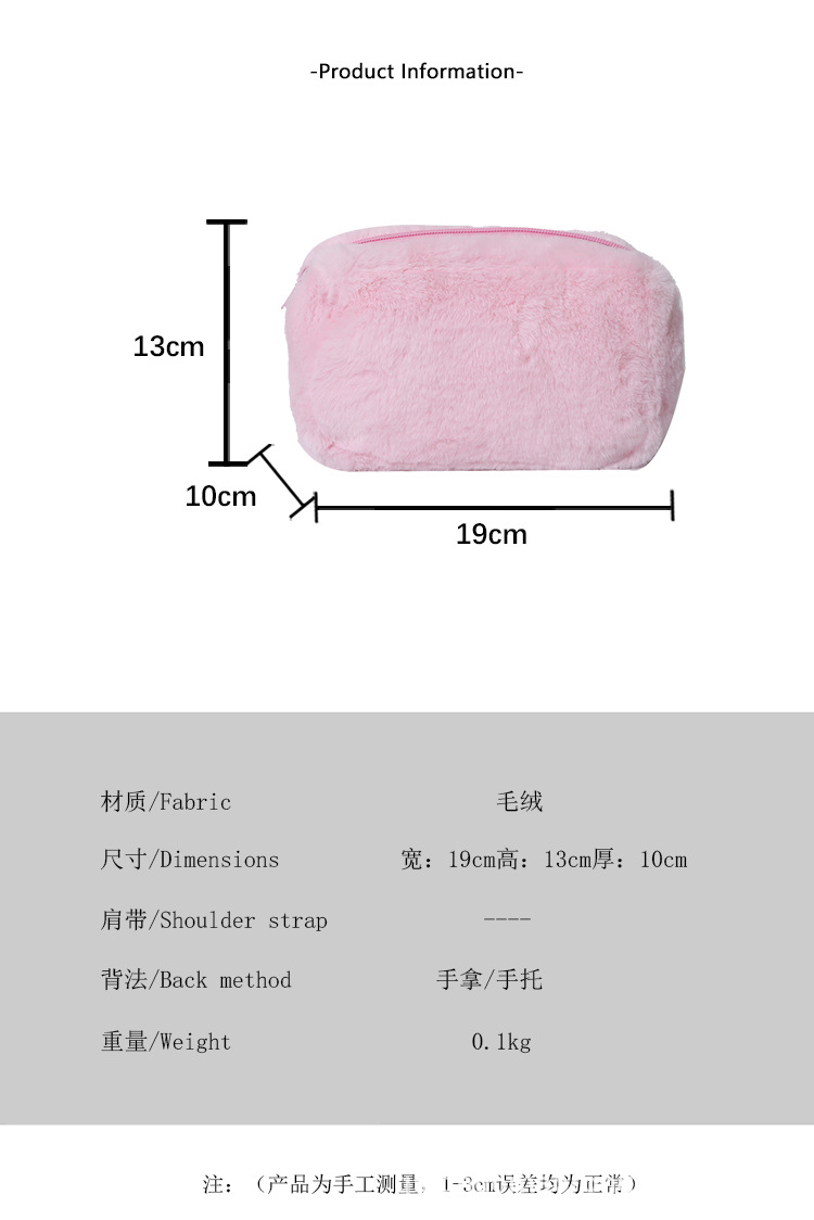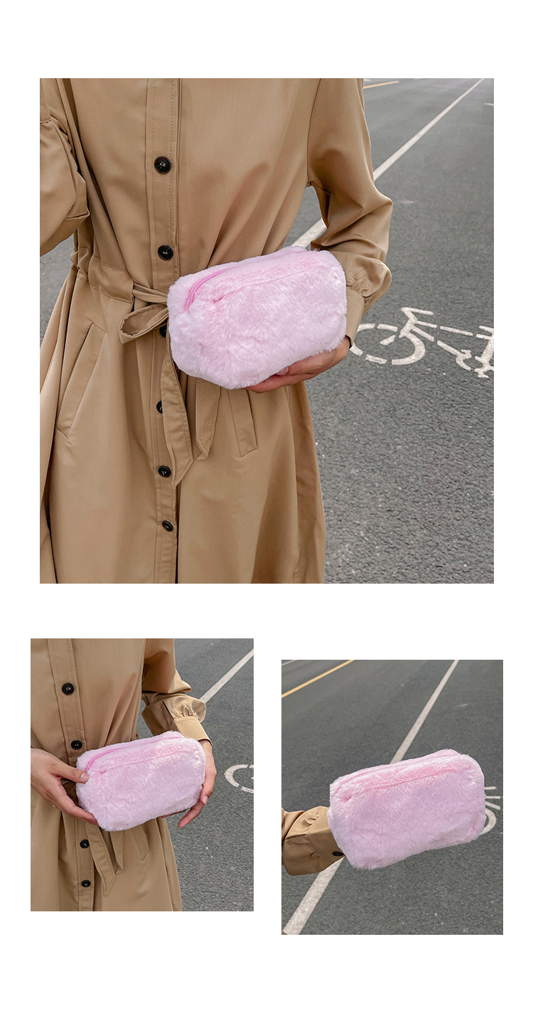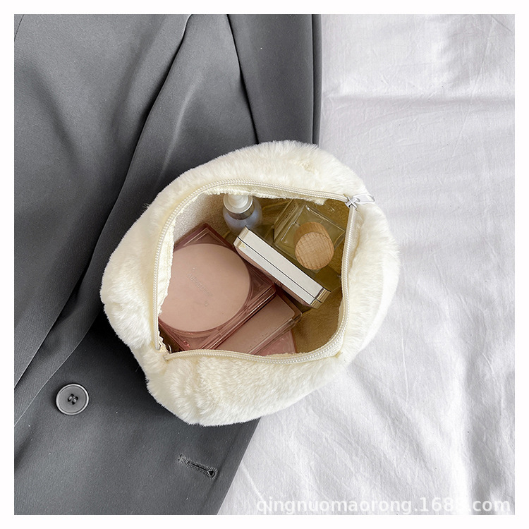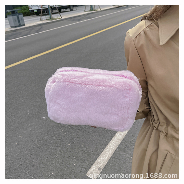 国境を越えた純色の子羊毛化粧バッグ女性のハンドバッグ冬の新しい柔らかいタオル布化粧品収納バッグ