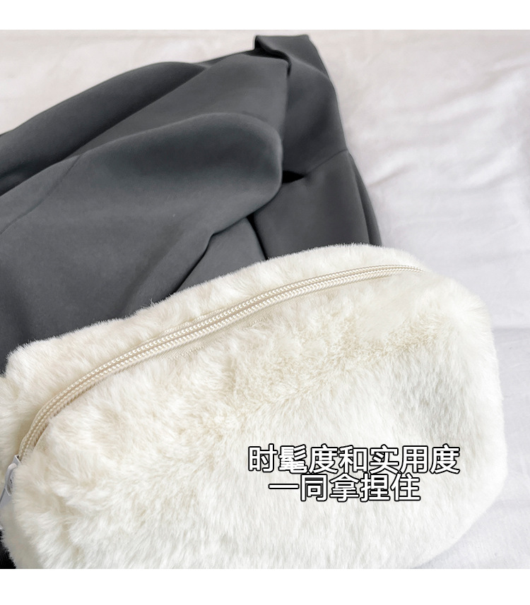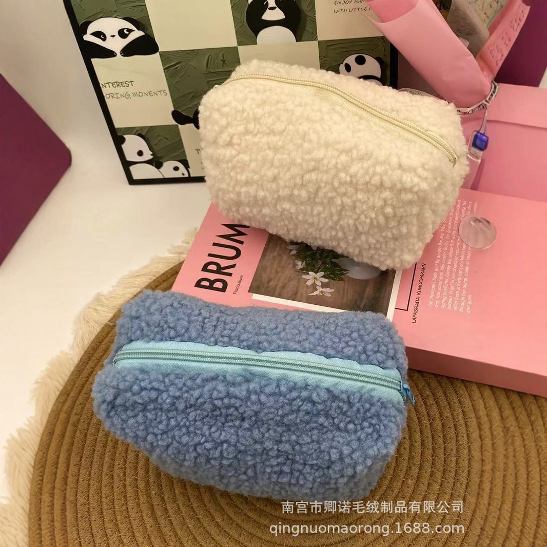 秋冬純色テディパイル大容量スキンケア用品収納バッグ旅行携帯パイルバッグシンプル化粧バッグ