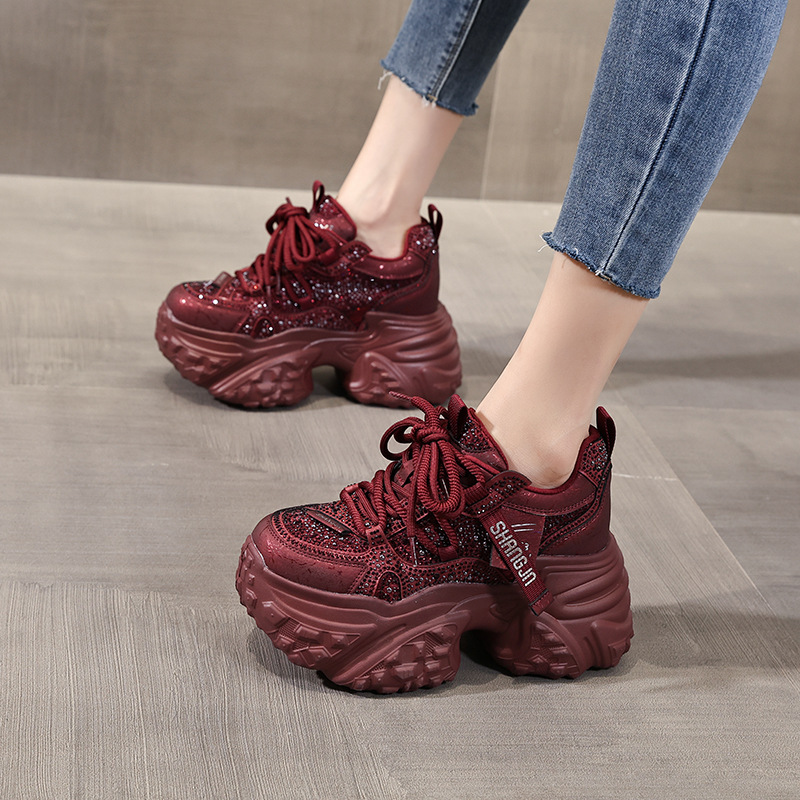 9cm小个子水钻透气厚底老爹鞋女2025秋季新款百搭增高休闲运动鞋