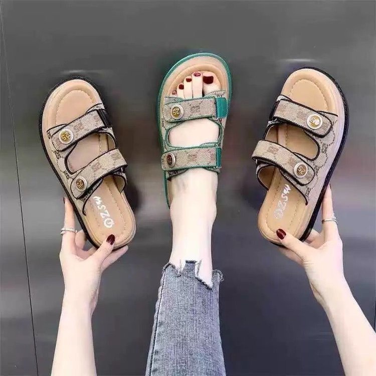 柔らかい皮の包みの頭の半スリッパの女性は2025年に新型の夏に出かけます。