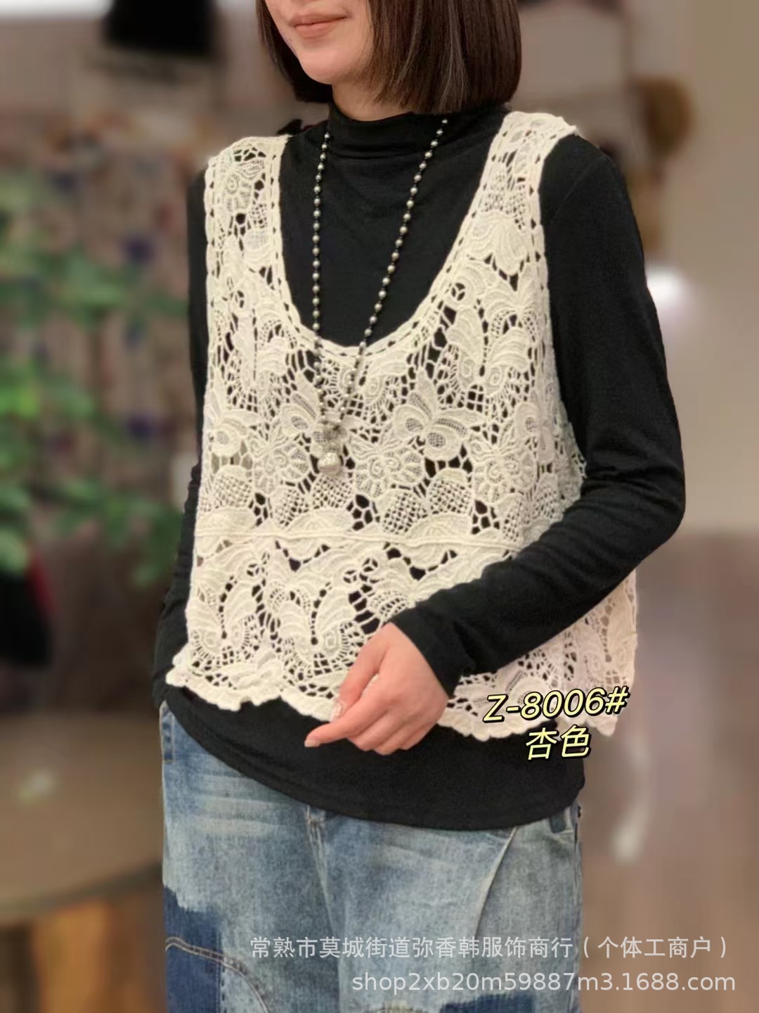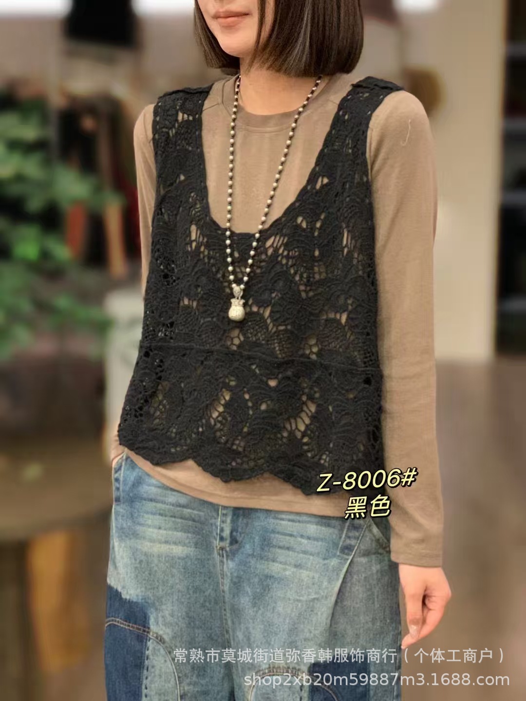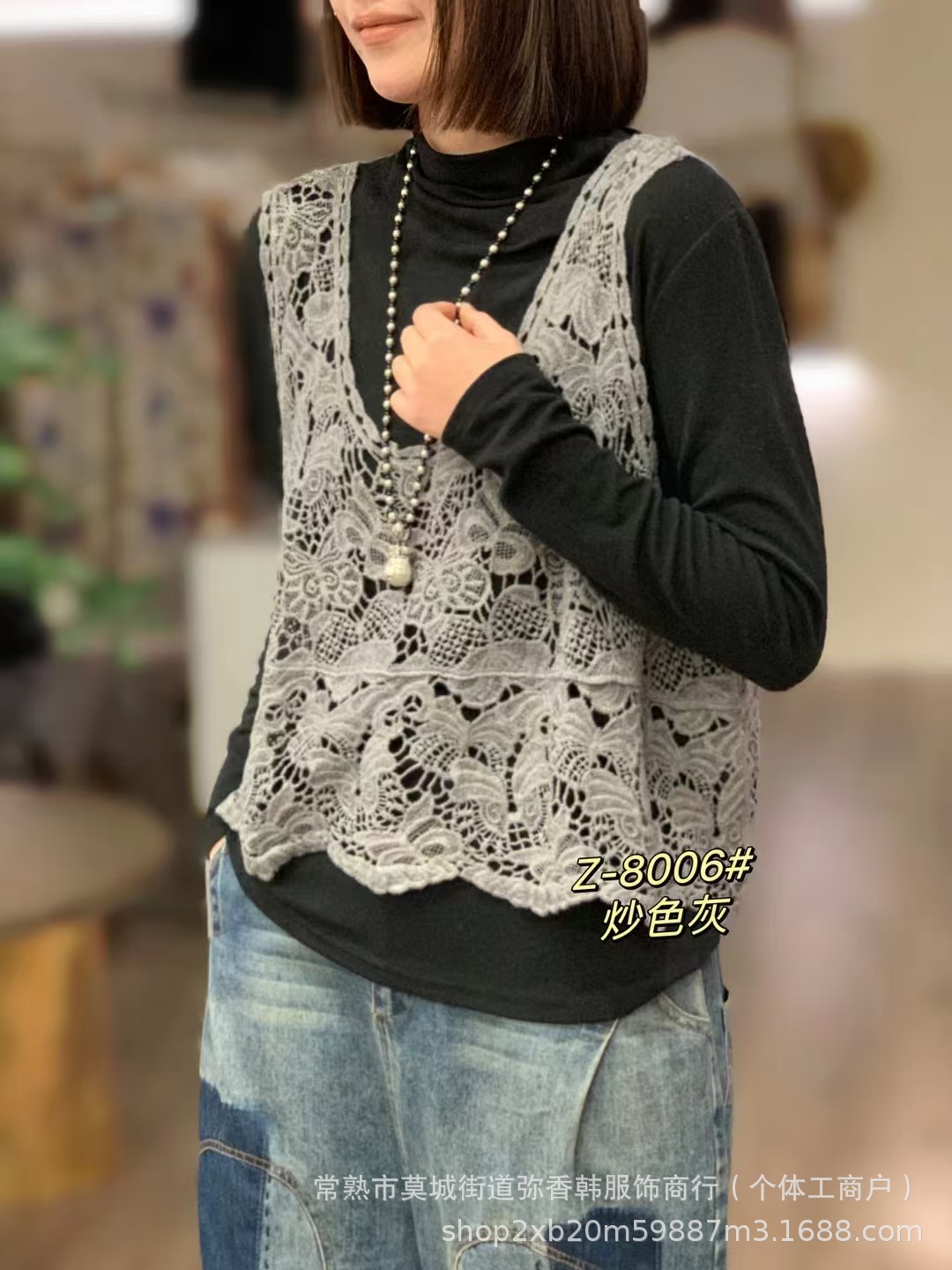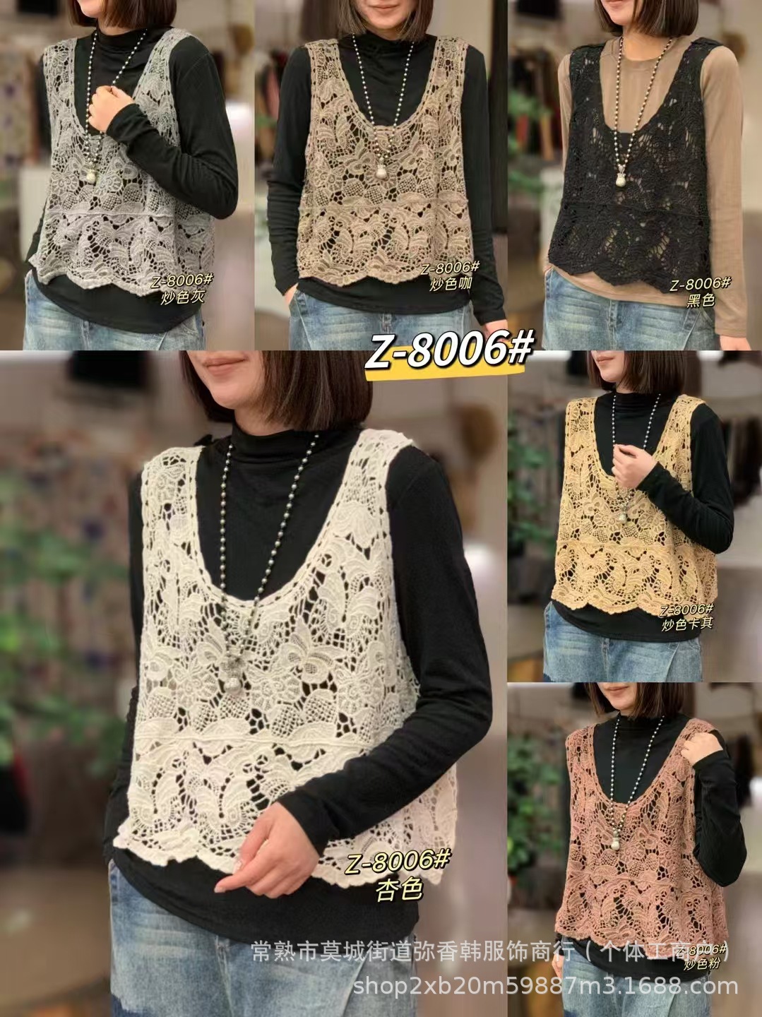 8006透かし編みの文芸のガーターの馬甲の復古の新型の外はベストのゆったりしている袖なしの短いブラウスの上着を着ます。