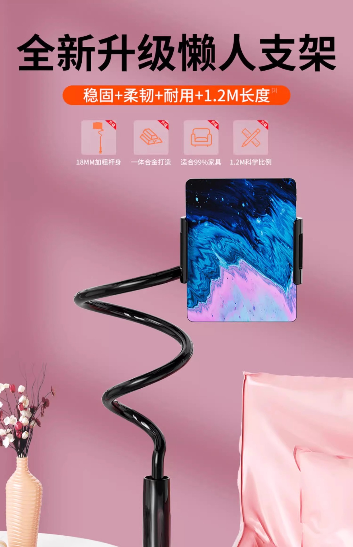 懒人手机支架床头桌面看电视追剧直播拍视频平板手机通用稳固不掉