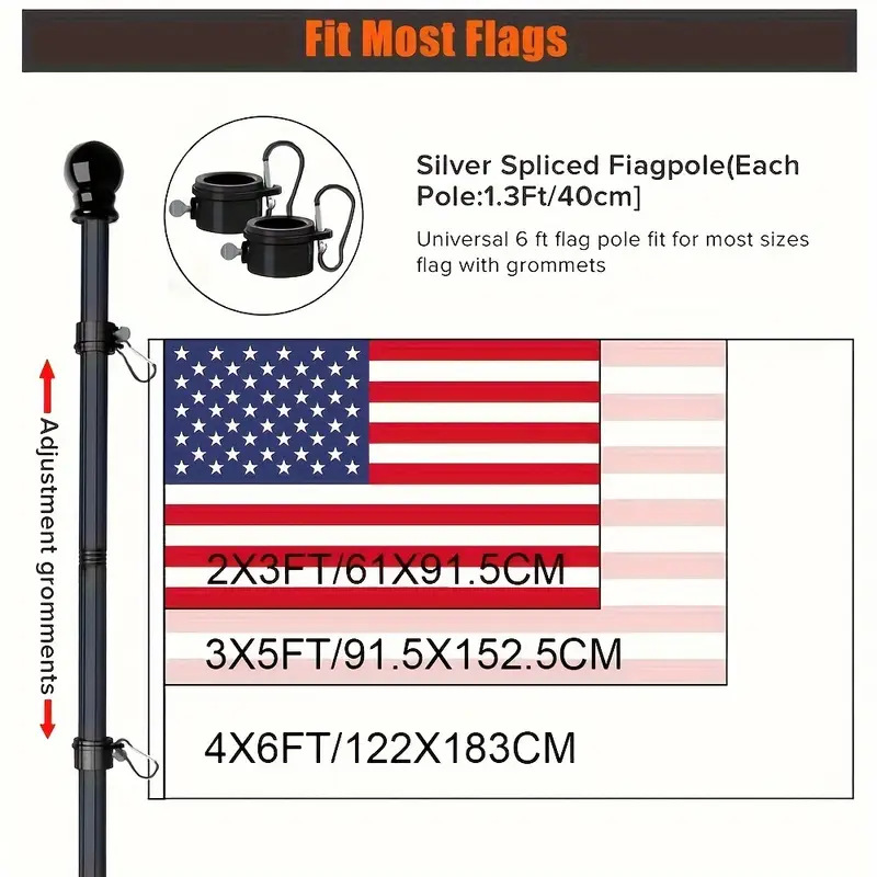 跨境美国户外5节6ft旗杆铝合金底座斜插墙壁旗座1.8米拼接旗杆
