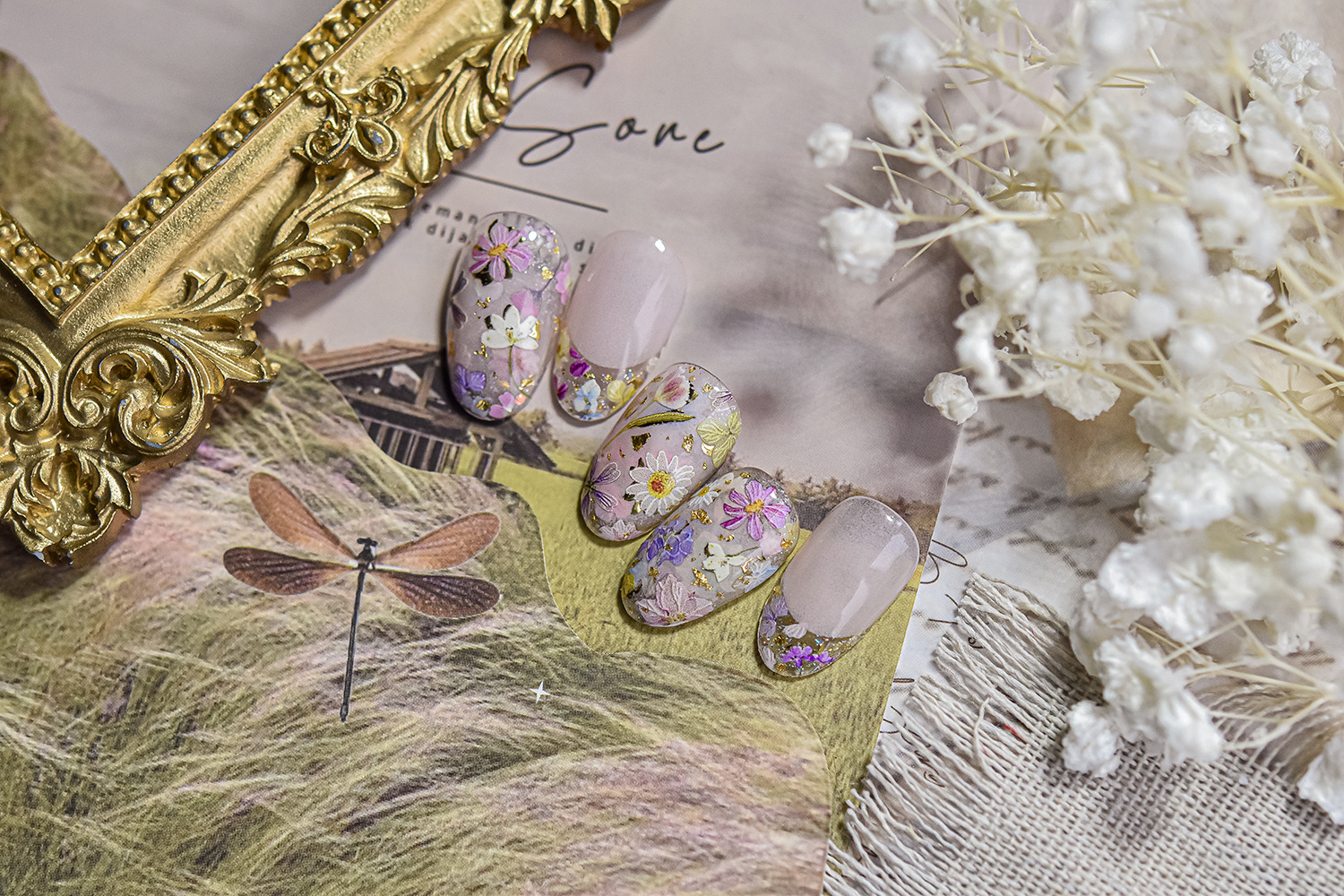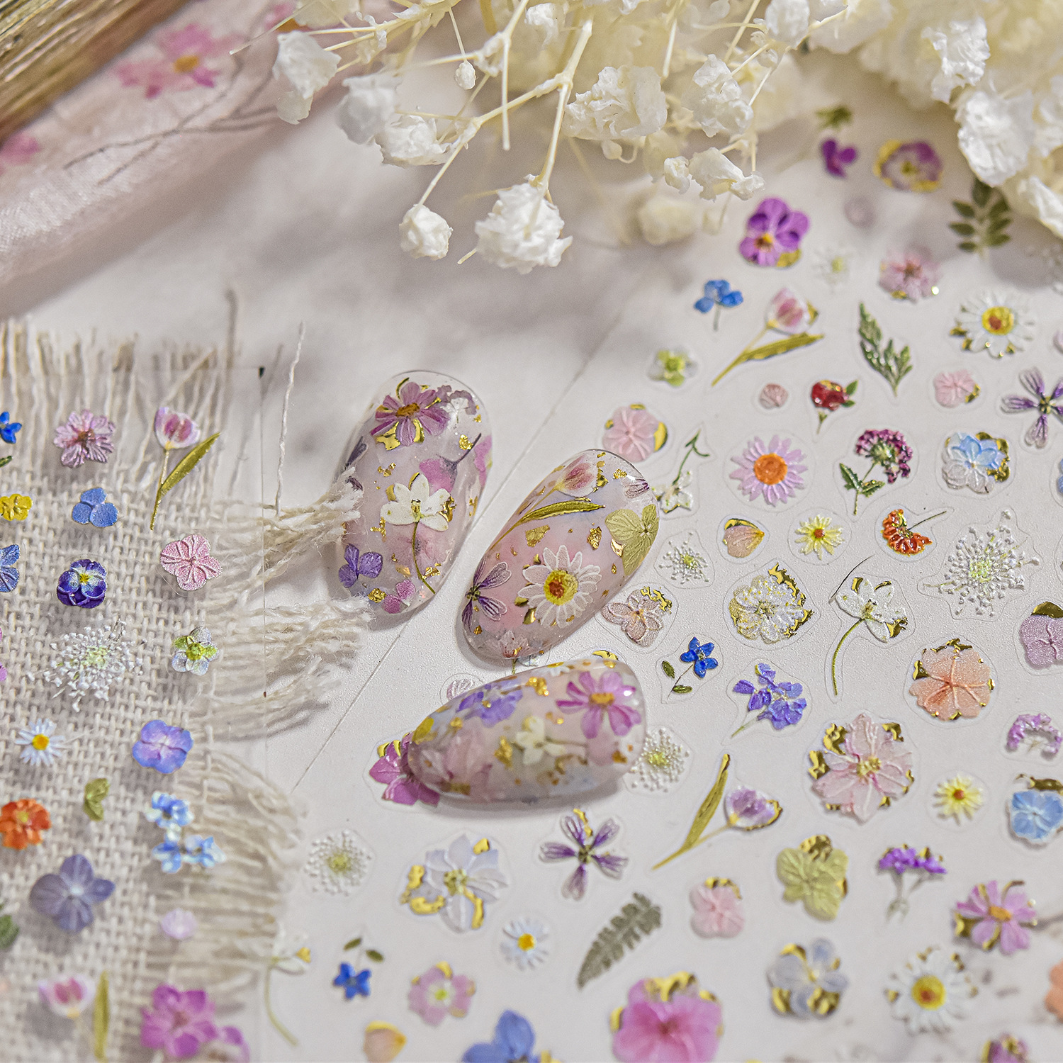 トモニ エンボスネイルステッカー 春の人気商品 ドライフラワーネイルステッカー 野原の小花ネイルデコレーションステッカー
