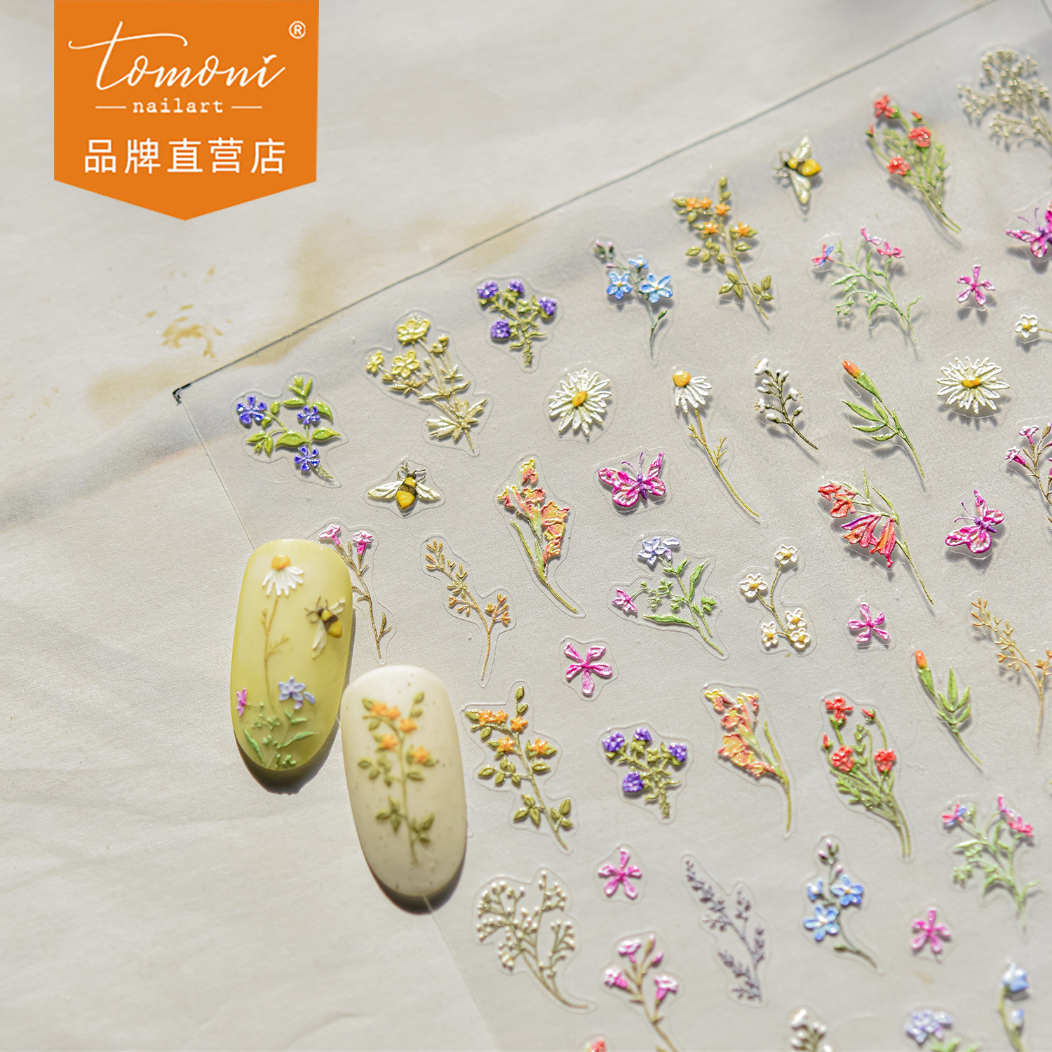 tomoni エンボスネイルアートステッカー春国民風人気ドライフラワー装飾ネイルステッカー工場卸売春の野生の花