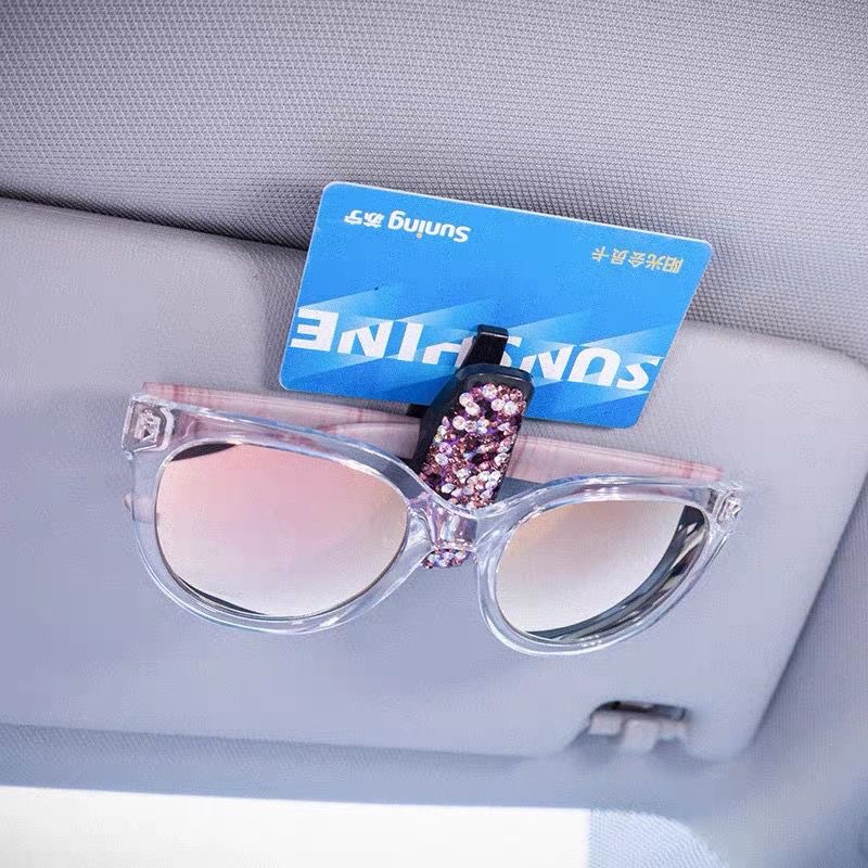 ダイヤモンドがちりばめられた車用メガネクリップ、多機能車載クリエイティブサンバイザー用メガネケース、車内に鮮やかな輝きを添えます