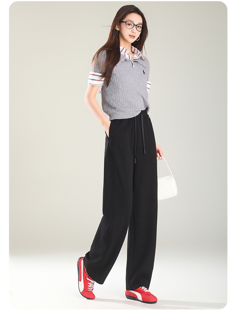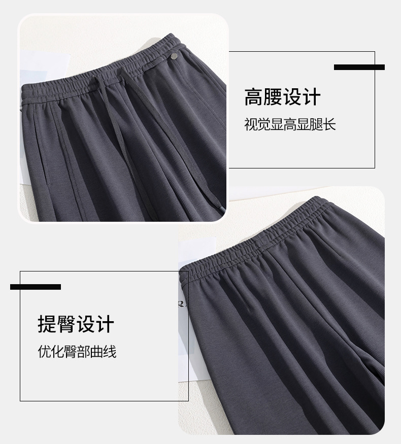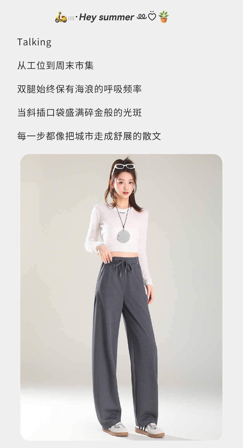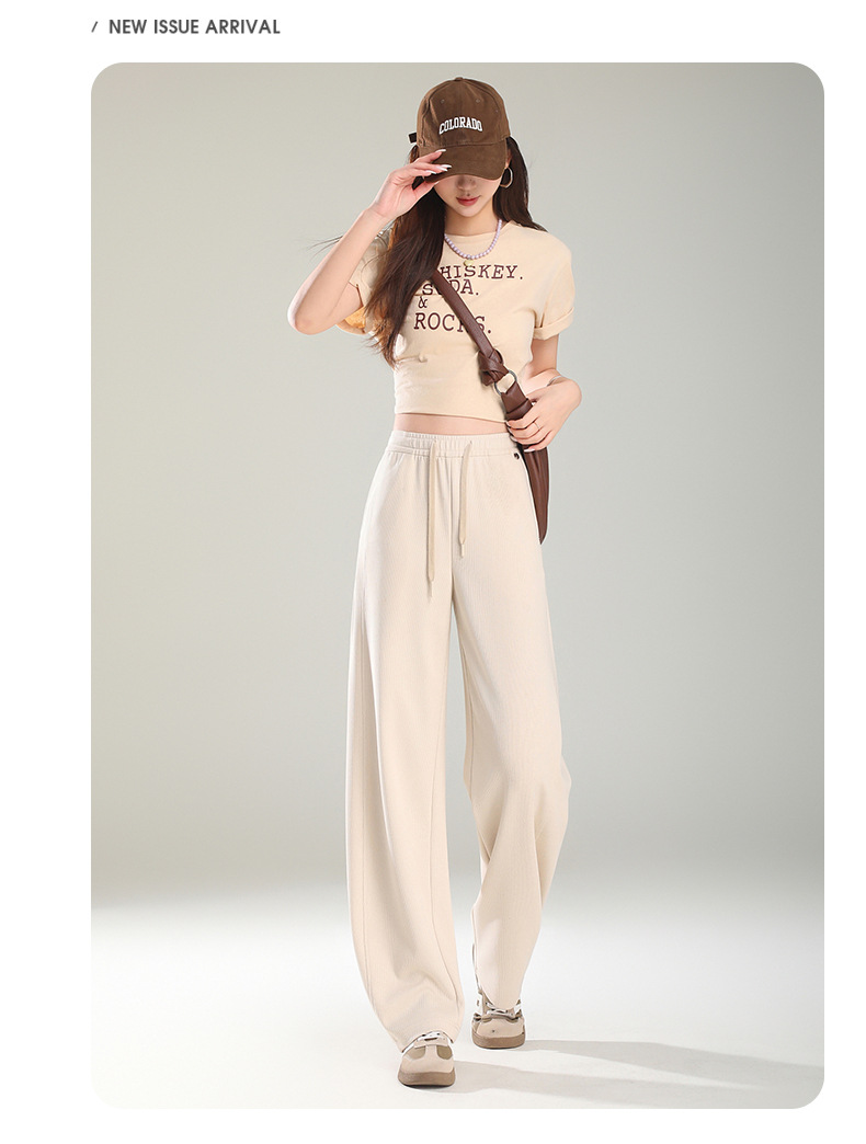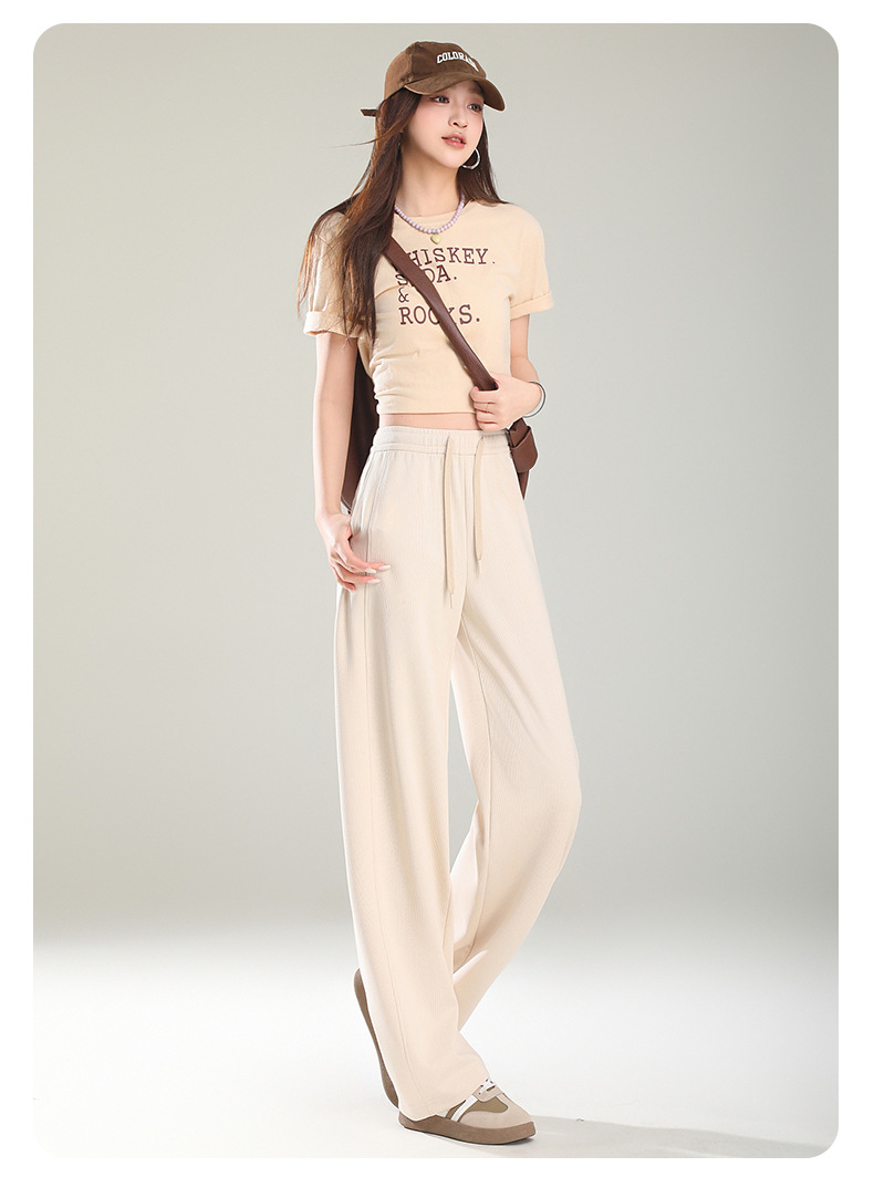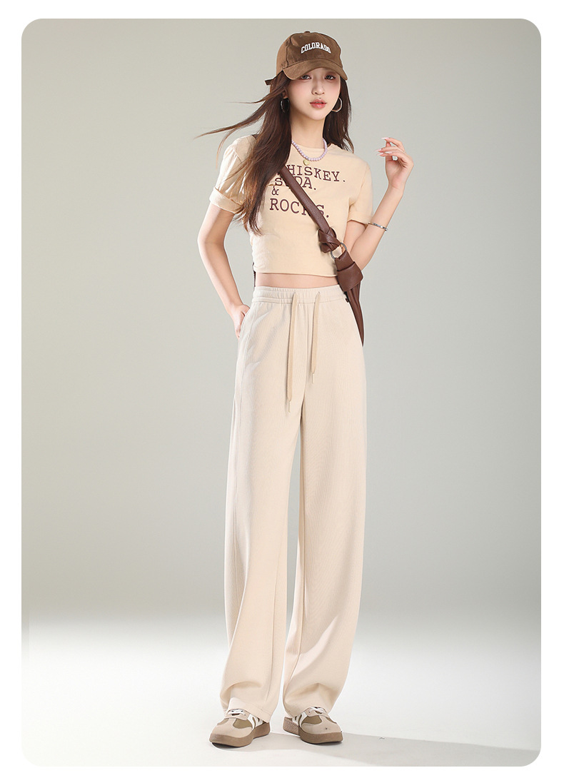 空気層の曲がったナイフのストレートパンツ2025春の新しいスポーツバナナのズボンはひもを引いて腰が高くてやせているカジュアルなズボンの女性を現します。