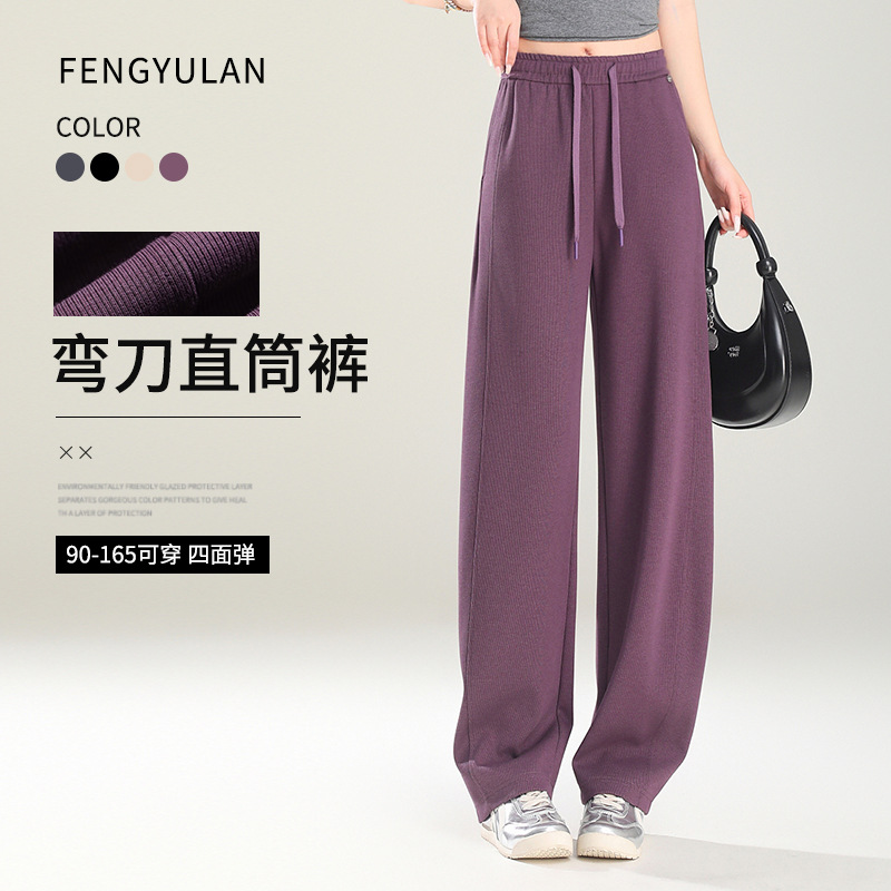 2025 新しい女性のためのワイドレッグパンツ春と秋のルーズストレートシミターパンツカジュアルストレートスウェットパンツ女性の卸売