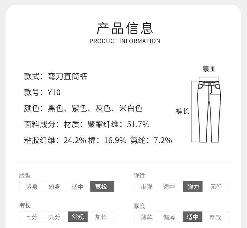 【加厚直筒裤】垂感修身休闲裤女冬季高腰弯刀裤显瘦香蕉裤批代发