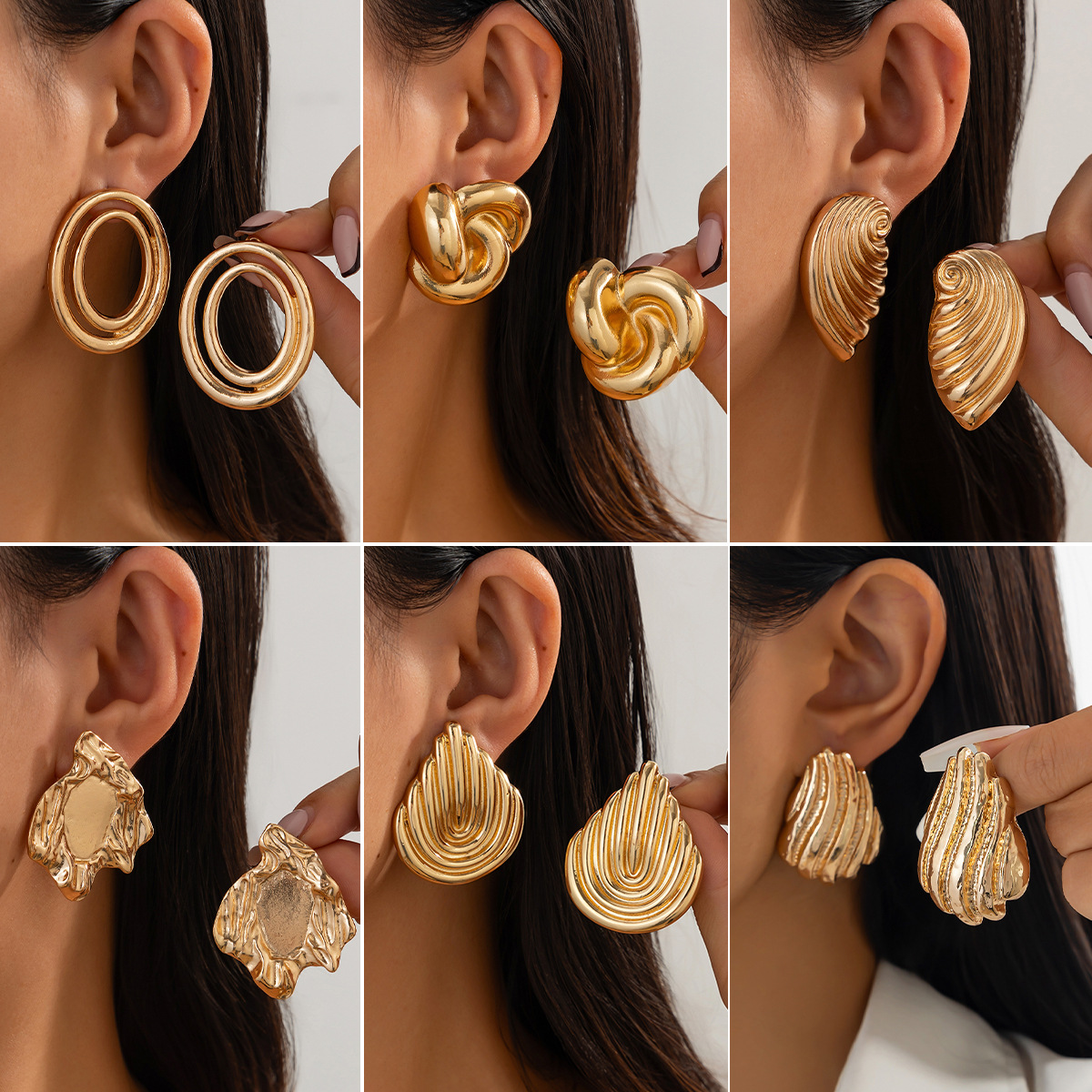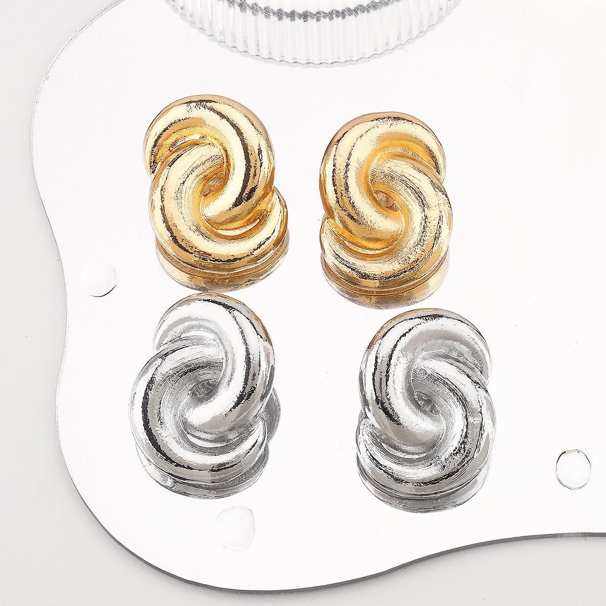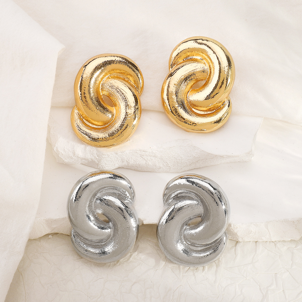 欧米国境を越えたファッションins風金属ねじ貝殻ピアスシンプルなデザイン感幾何学円環ねじり耳飾り