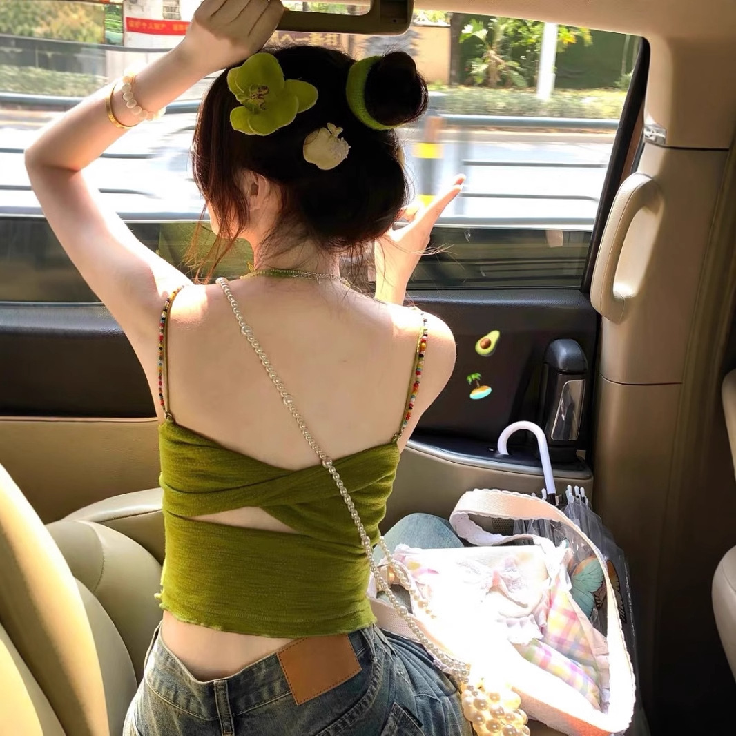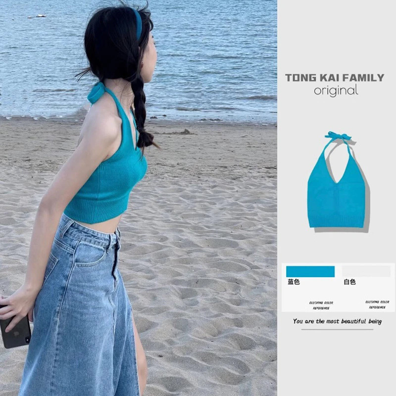 Sweet Hot Girl ドーパミンニットホルターネックキャミソールレディースハイエンドサマーアウターショートバックレスノースリーブトップ