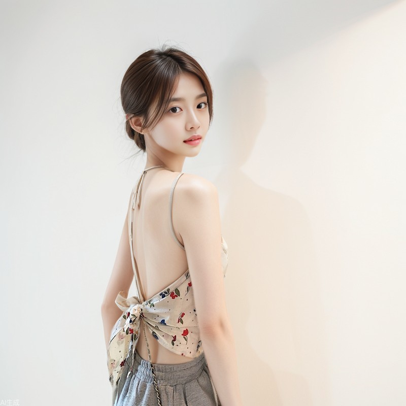 小さな花のホルターネック蝶結びサスペンダーベルト付きサマーベスト、2025年新作、結び目付き、ホットガール向け、外で着用可能