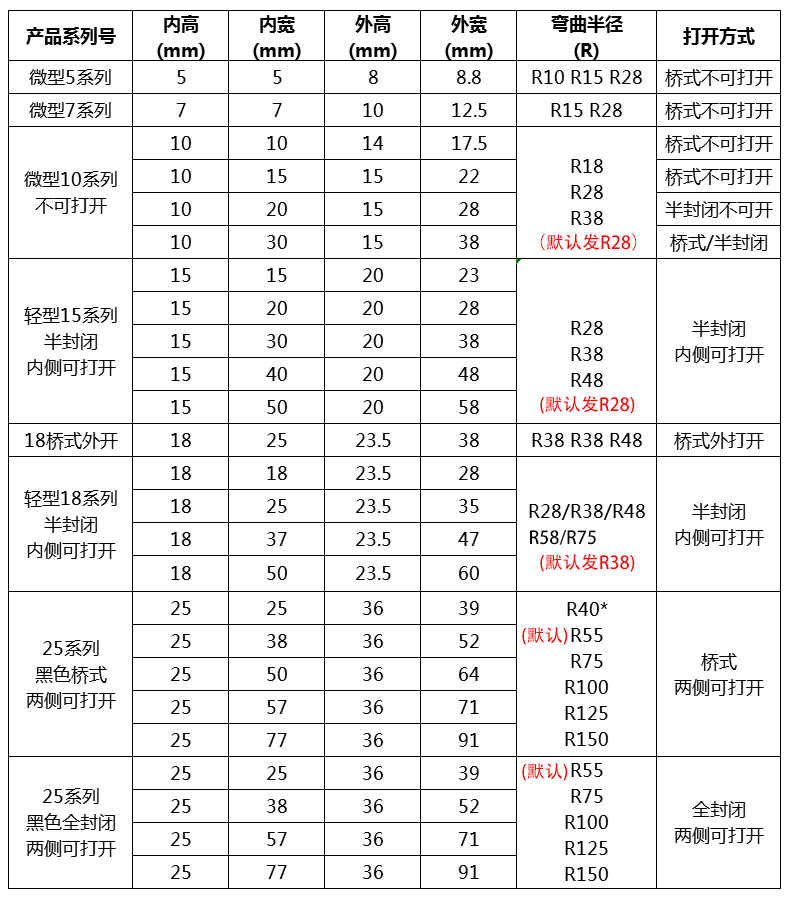 <<内径5×5ブリッジタイプはR10長は開きません、デフォルトは1本<ne1>>,<<内径7×7ブリッジタイプはR15長は1本のデフォルトでは開きません>>,<<内径10*10ブリッジタイプは開きません、R18の長さはデフォルトで1本です<ne1>>,<<内径10*10ブリッジタイプはR28長は開きません、デフォルトは1本です<ne1>>,<<内径10*15ブリッジタイプ未開口R18、デフォルト長さは1本<ne1>>,<<内径10*15ブリッジタイプはR28長は開きません、デフォルトは1本です<ne1>>,<<内径10*20、半密閉、未開口R28、デフォルト長さは1本<ne1>>,<<内径15*20半密閉内開きR28、デフォルトの長さは1本<ne1>>,<<内径15*20半密閉内開きR38、デフォルトの長さは1本<ne1>>,<<内径15*30、半密閉型、内開きR28、デフォルト長さは1本<ne1>>,<<内径15*40、半密閉型、内開き、ジョイント含む/メートル、デフォルト長さは1本<ne1>>,《《内径18×25半密閉型内開口ジョイント付/メートル推奨》》,<< 内径 18*37 半密閉型内開口ジョイント/メートル、デフォルトの長さは 1 1.0m >>,<<内径18*50、半密閉型、内開き、ジョイント/メートル含む、デフォルトの長さは1個1.0mです>>,<<内径25*25ブリッジタイプは両側ジョイント/メートル長で開閉可能、デフォルトは1つ<ne1>>,<<内径25×38ブリッジタイプは両側ジョイント開口可能/店長オススメ>>,<<内径25*57ブリッジタイプは両側ジョイント/メーター開口可能、デフォルト長さは1本<ne1>>,<<内径25×77ブリッジタイプは両側ジョイント/メーター開口可能、デフォルト長さは1本<ne1>>,<<内径25*38、完全密閉、ジョイント含む開閉可能/メートル、デフォルトの長さは1本<ne1>>,<<内径25*57、完全密閉、ジョイント付き開閉可能/メートル、デフォルトの長さは1個1.0m>>,<<内径25*25、外径35*41、サイレントドラッグチェーンのデフォルト長は1<ne1>>,<<内径25*38、外径35*54、サイレントドラッグチェーンのデフォルト長は1本<ne1>>,<<内径25*57、外径35*73、サイレントドラッグチェーンのデフォルト長は1本<ne1>>