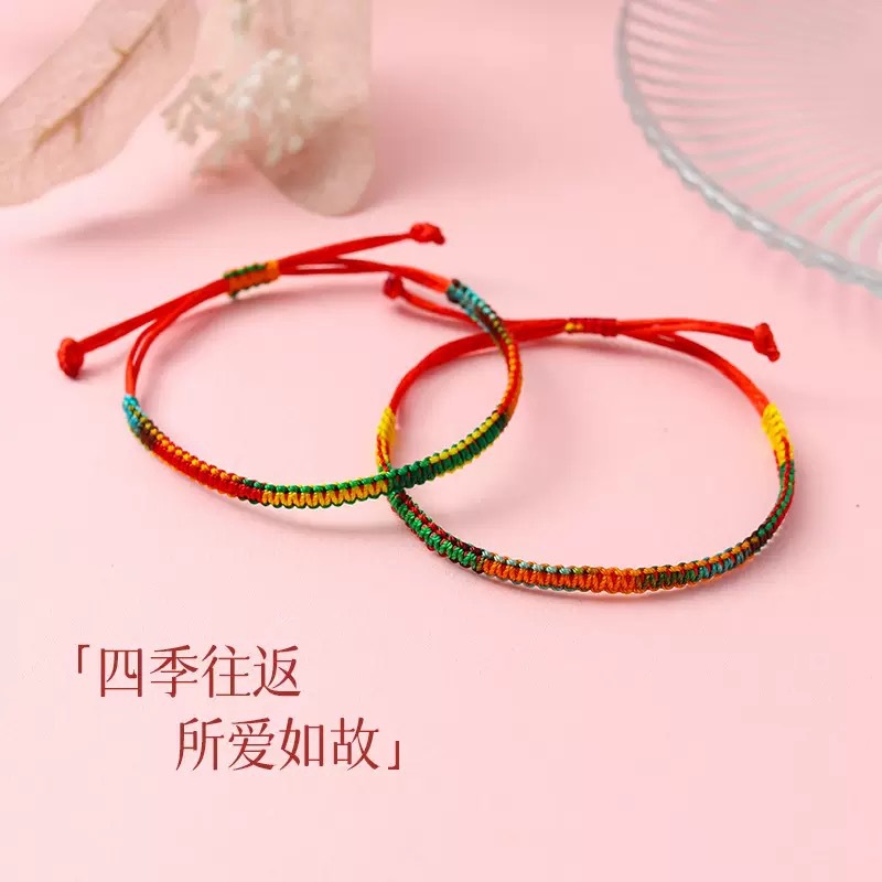 五彩绳手绳本命年红绳手链男女儿童情侣款手工编织绳送礼物纯手工