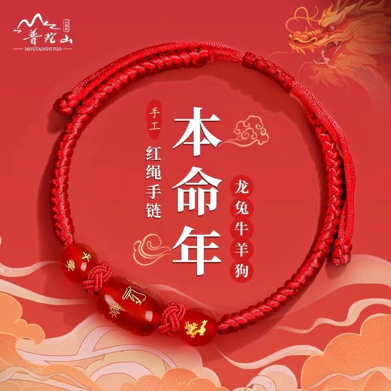 2025龍年プレトリア山本命年泰歳紅縄ブレスレット女性男女手縄子供赤色人工編み縄