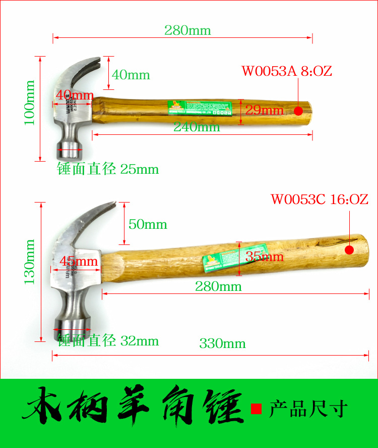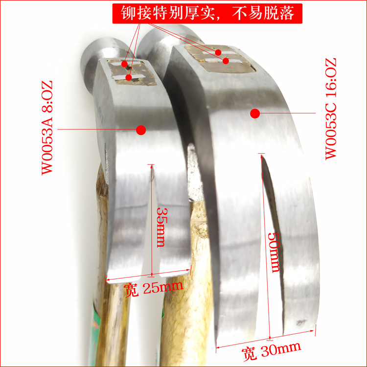 ◆锤头采用优质高碳钢精工锻造,锤头全抛光,