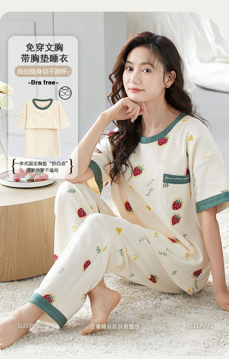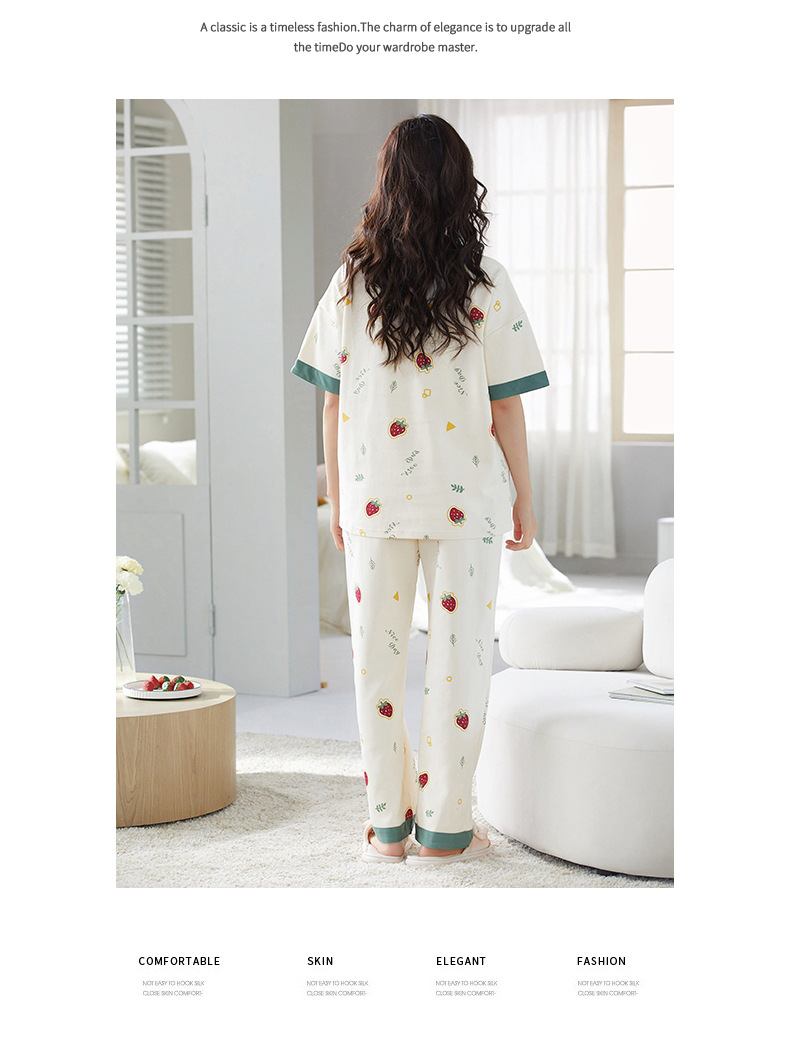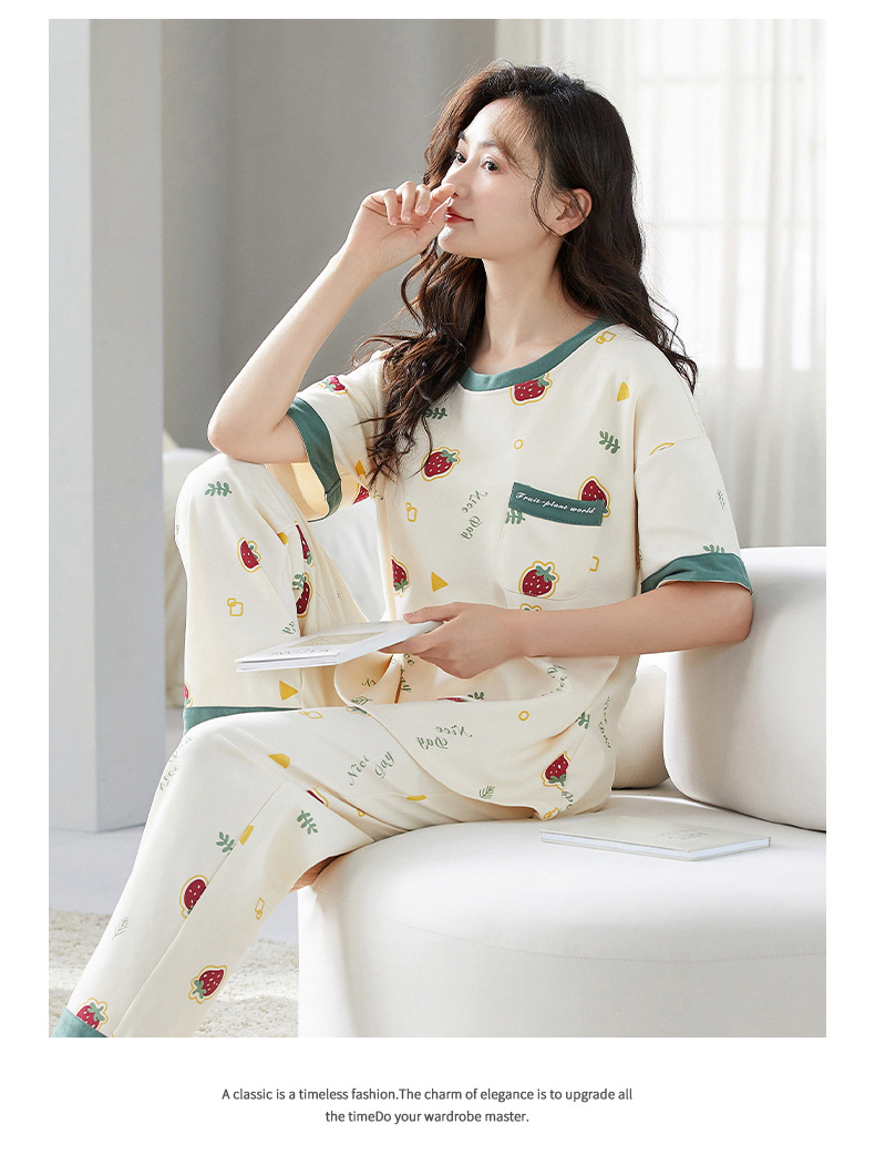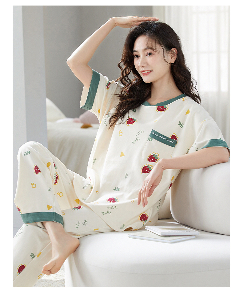 パジャマの女性の夏2025の新しい綿の薄いタイプのゆったりした家庭服の半袖のズボンはカジュアルにスーツを着ることができます。