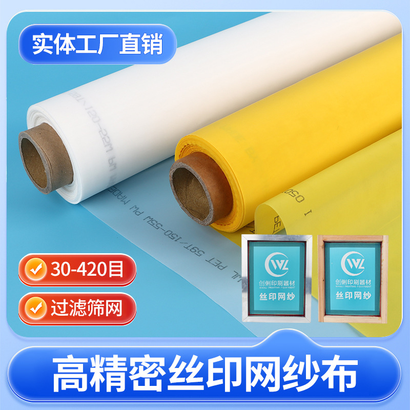 现货白黄色30-500目高张力丝印网纱印刷聚酯丝印涤纶网布丝网印刷