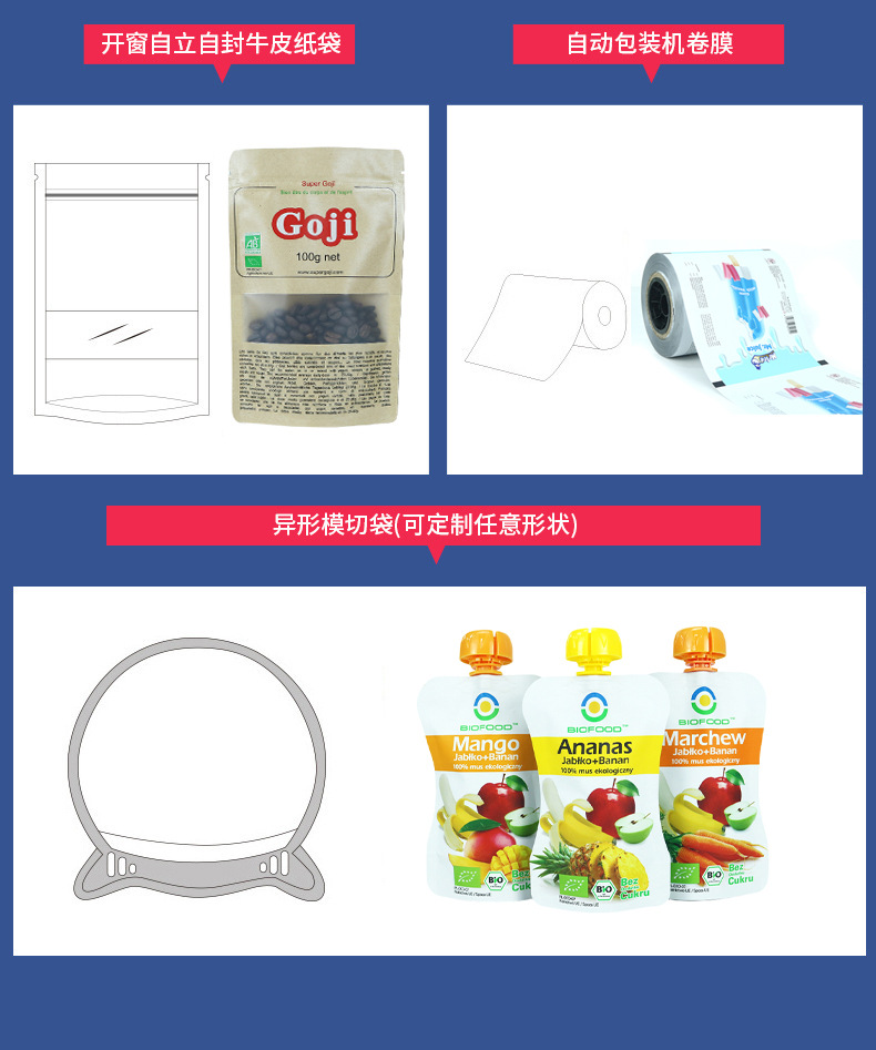 食品包装袋カスタムアルミ箔袋自動包装機アイスクリームキャンディー粉末チョコレート包装フィルム