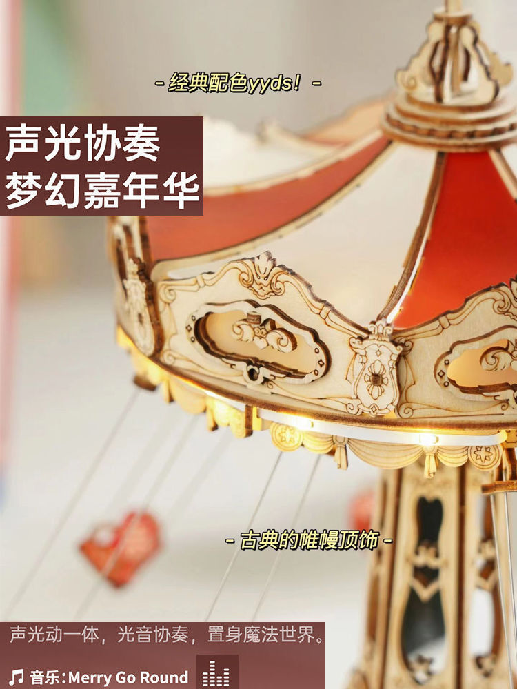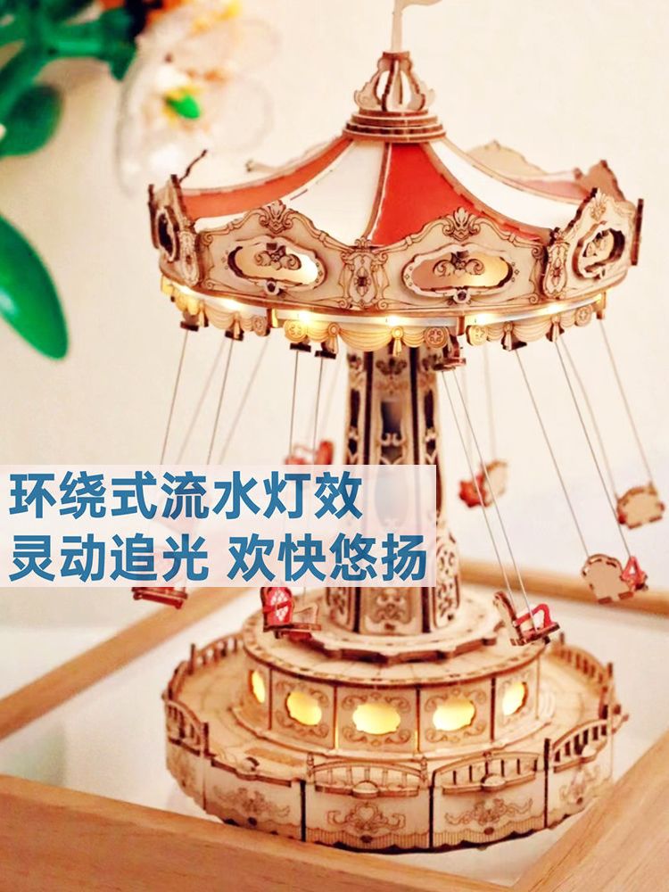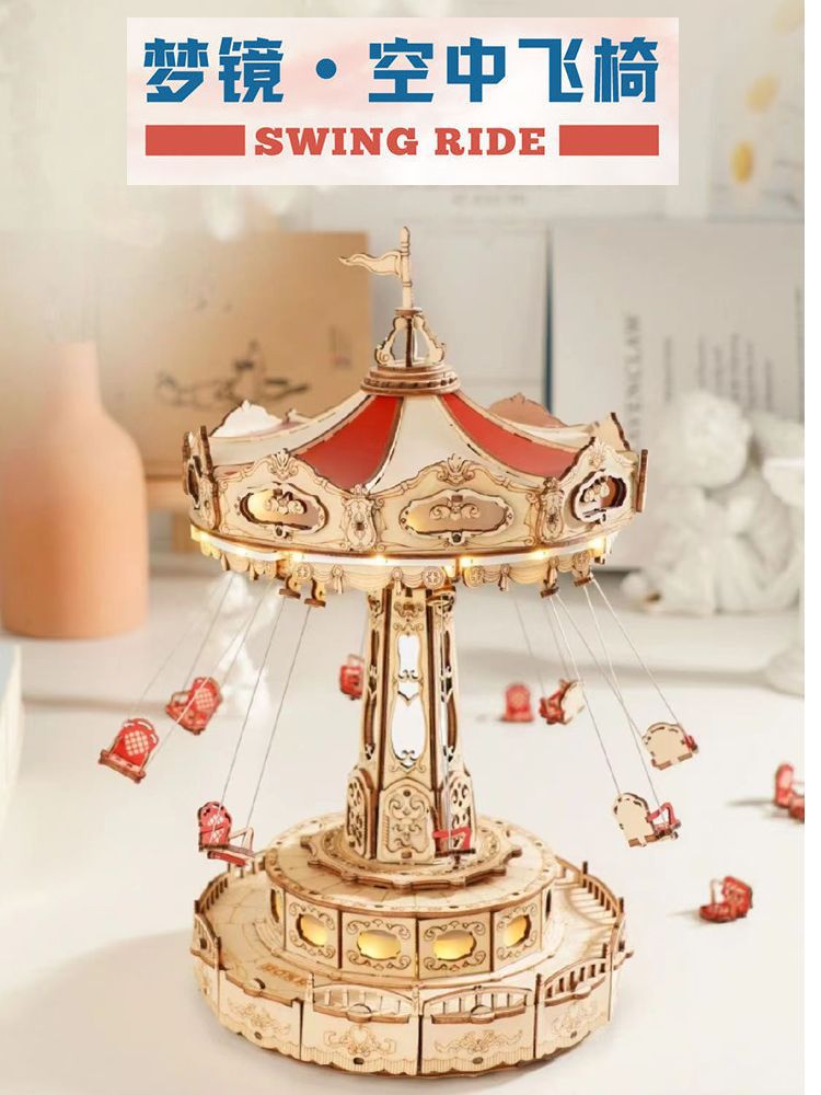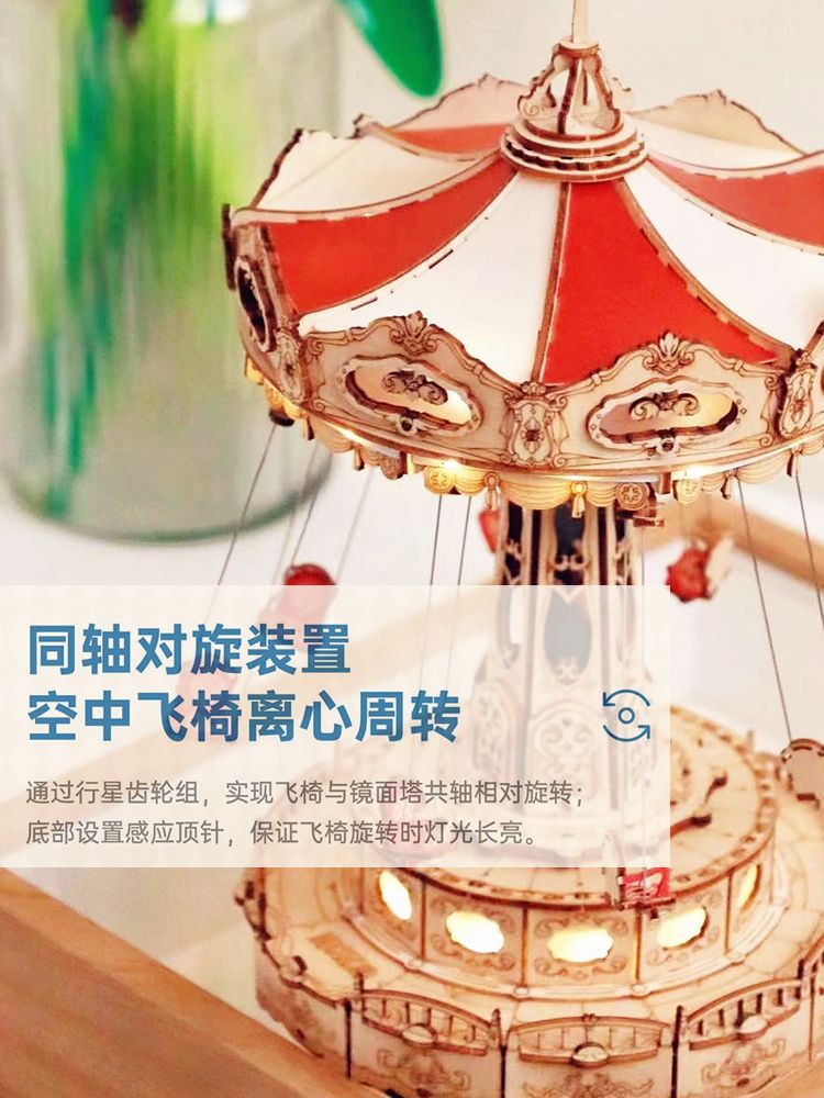 空中で客を送るなら夢鏡木製の組み立てモデルOK飛椅子3DRパズルdiy手作りプレゼントRクリエイティブ置物