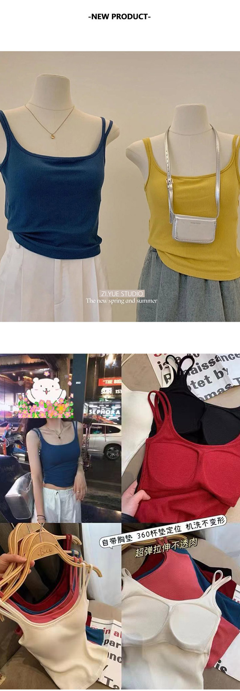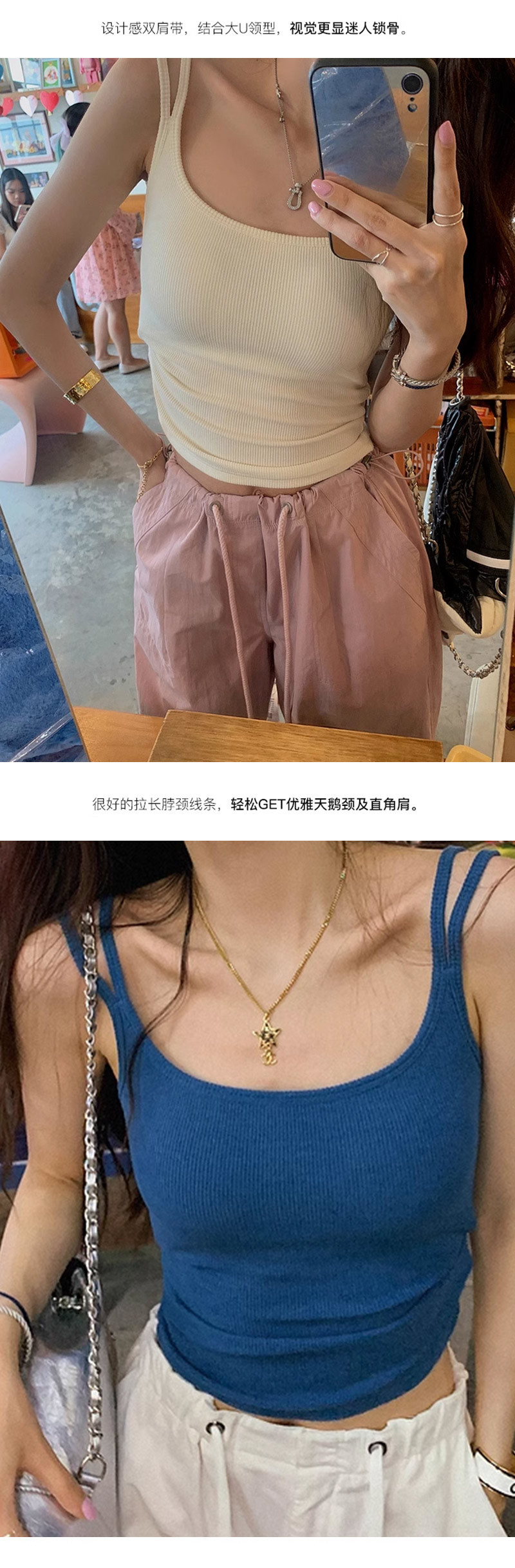 女性用露出防止キャミソール、美しい背中、着痩せトップス、ボトムス、外でも着用可能、胸をカバー、ベーシックで多用途