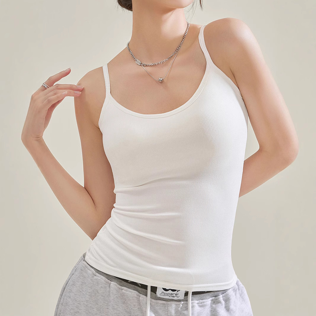 純粋な欲望を表現する胸パッド付きキャミソール、女性用2025年新作、無地、タイトなデザイン、スクエアネック、インナーとしてもアウターとしても着用可能、美しい背中