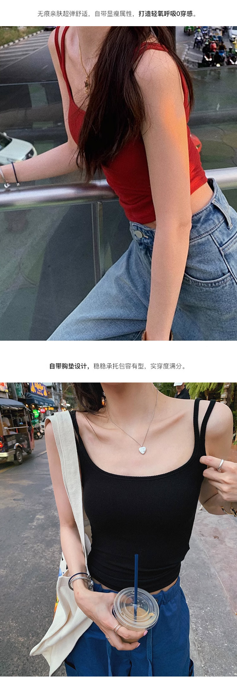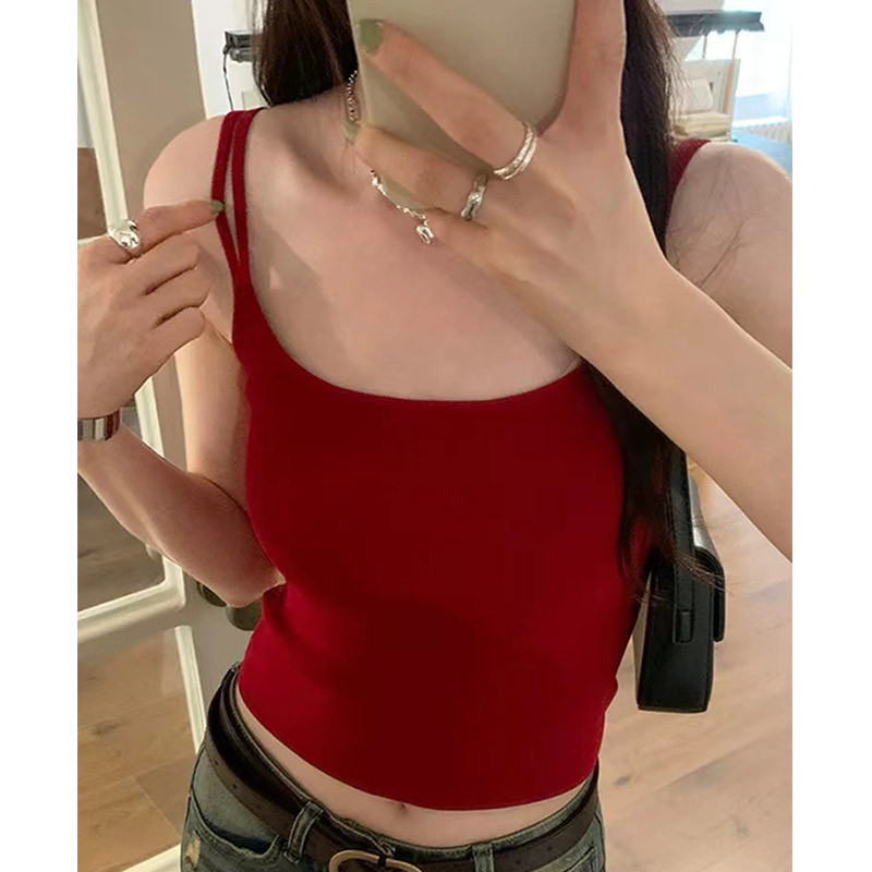 小さいサスペンダーのベストの女性の夏2025新型の中に胸のパッドの赤い美背のブラジャーをつけて一体の下着を打って外に着ます。