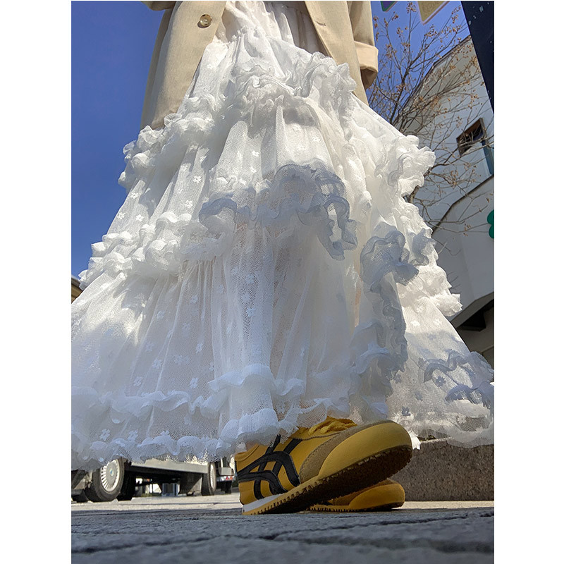 白色网纱蕾丝半身裙女春季2026新款松紧高腰显瘦垂坠感蓬蓬蛋糕裙