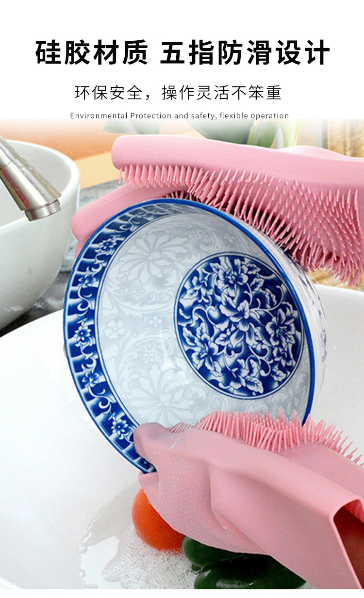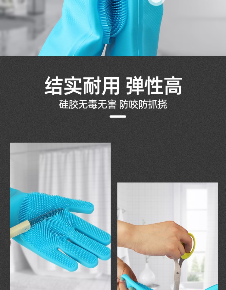 家用洗碗手套硅胶防烫防滑手套洗碗神器厨房耐用刷碗家务防水
