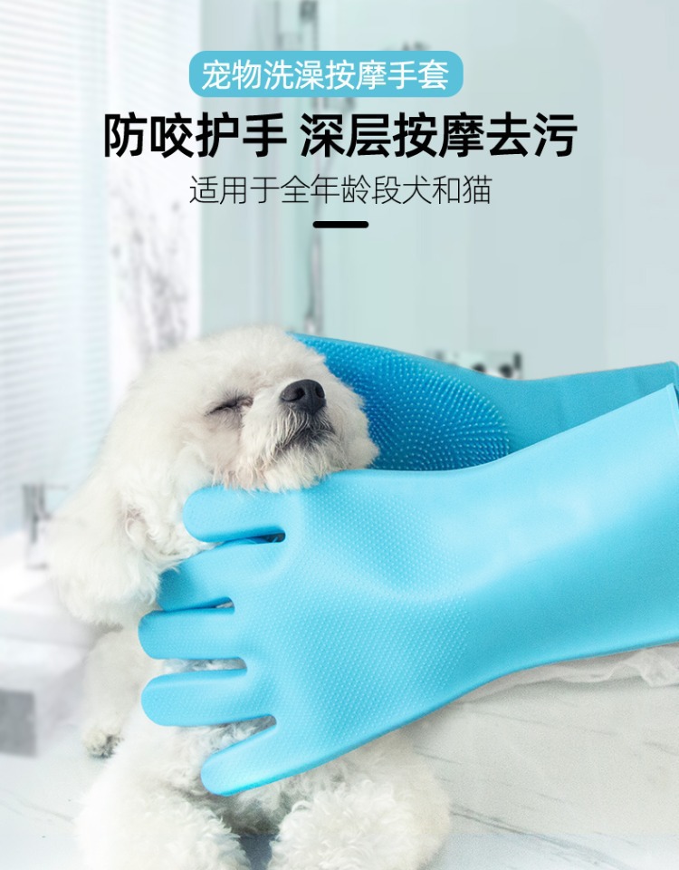 宠物洗澡手套狗狗猫咪洗澡神器防抓防咬泰迪金毛搓澡加长洁刷子