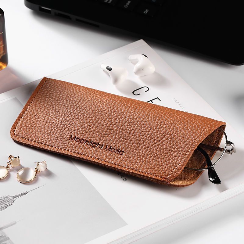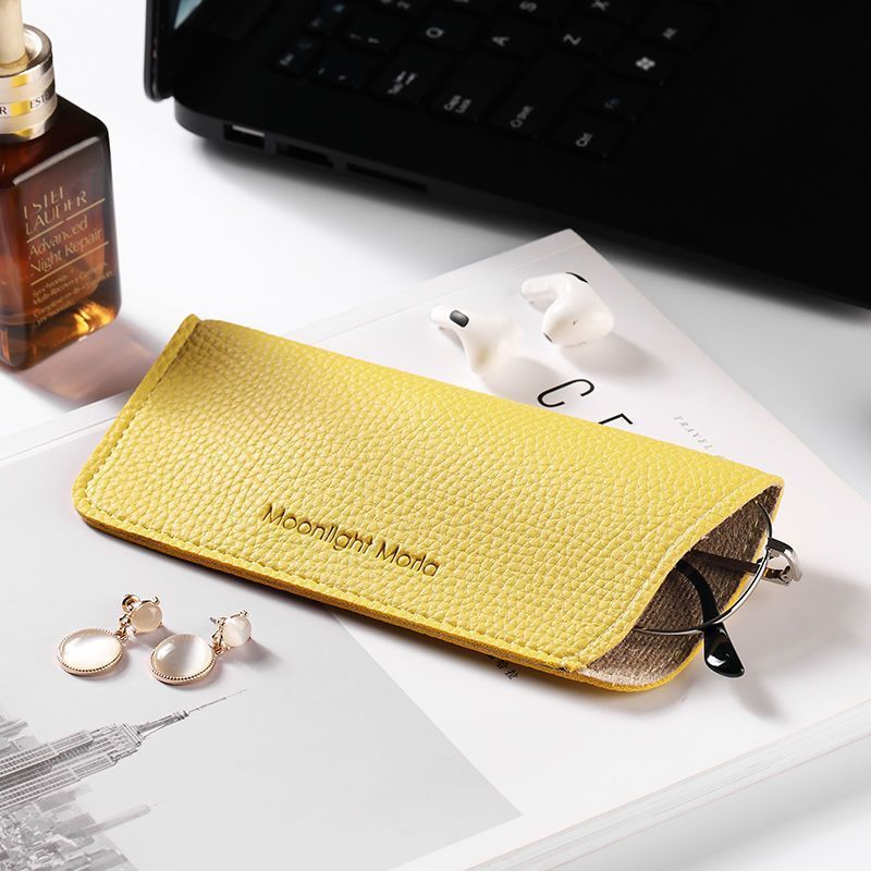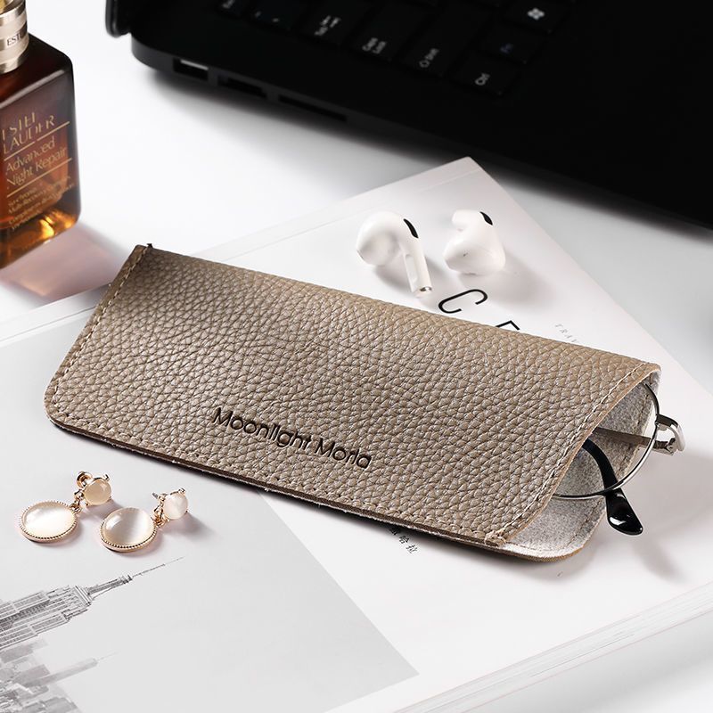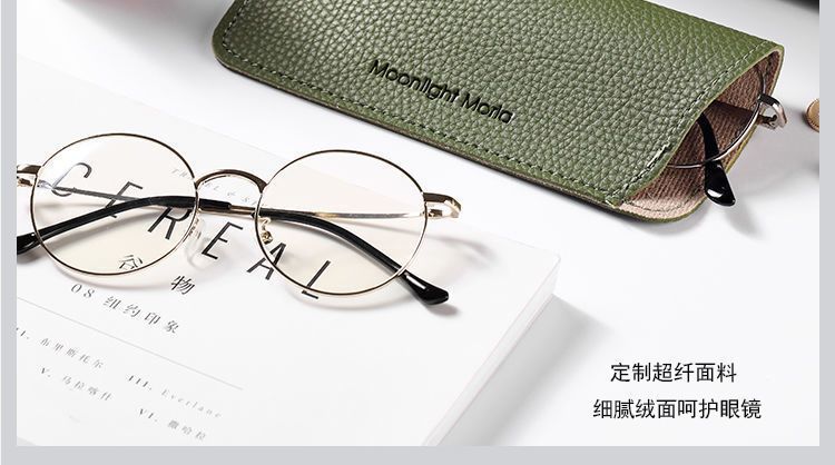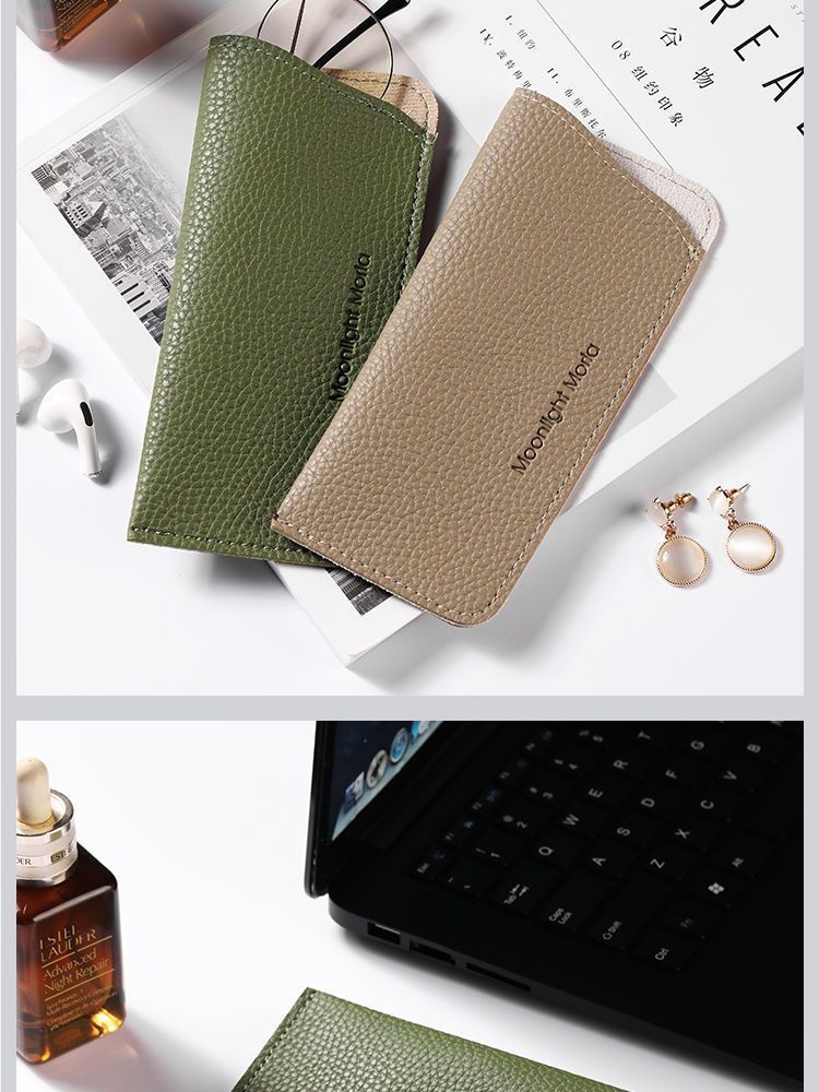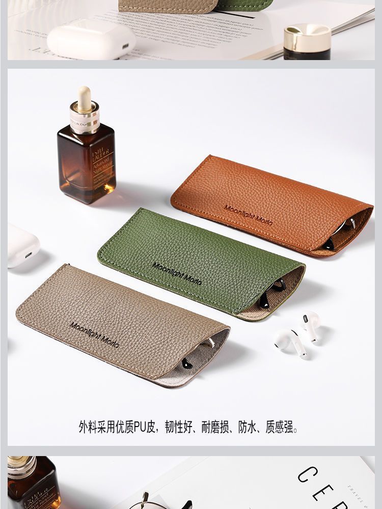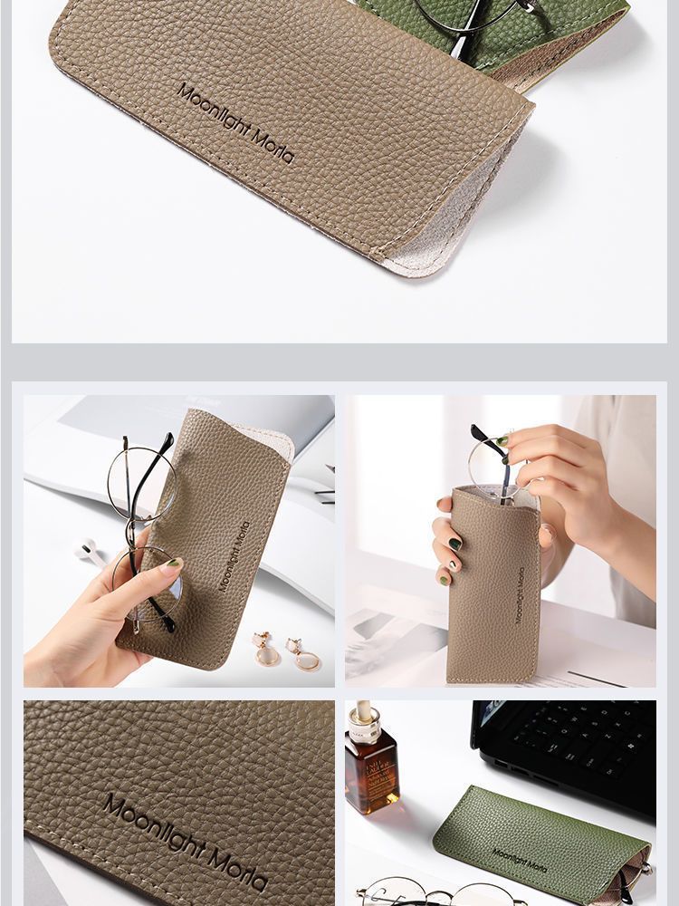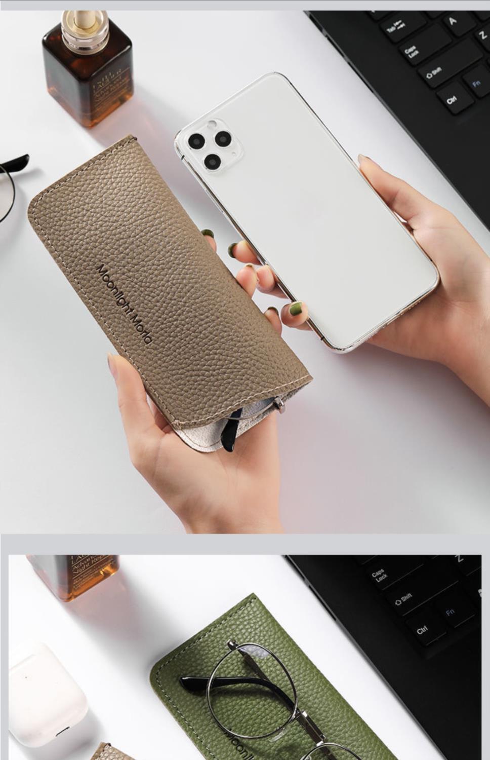 Ins日系トップソフトレザーメガネ収納バッグ高級感真ソフトレザーポータブル小衆女性革メガネバッグ