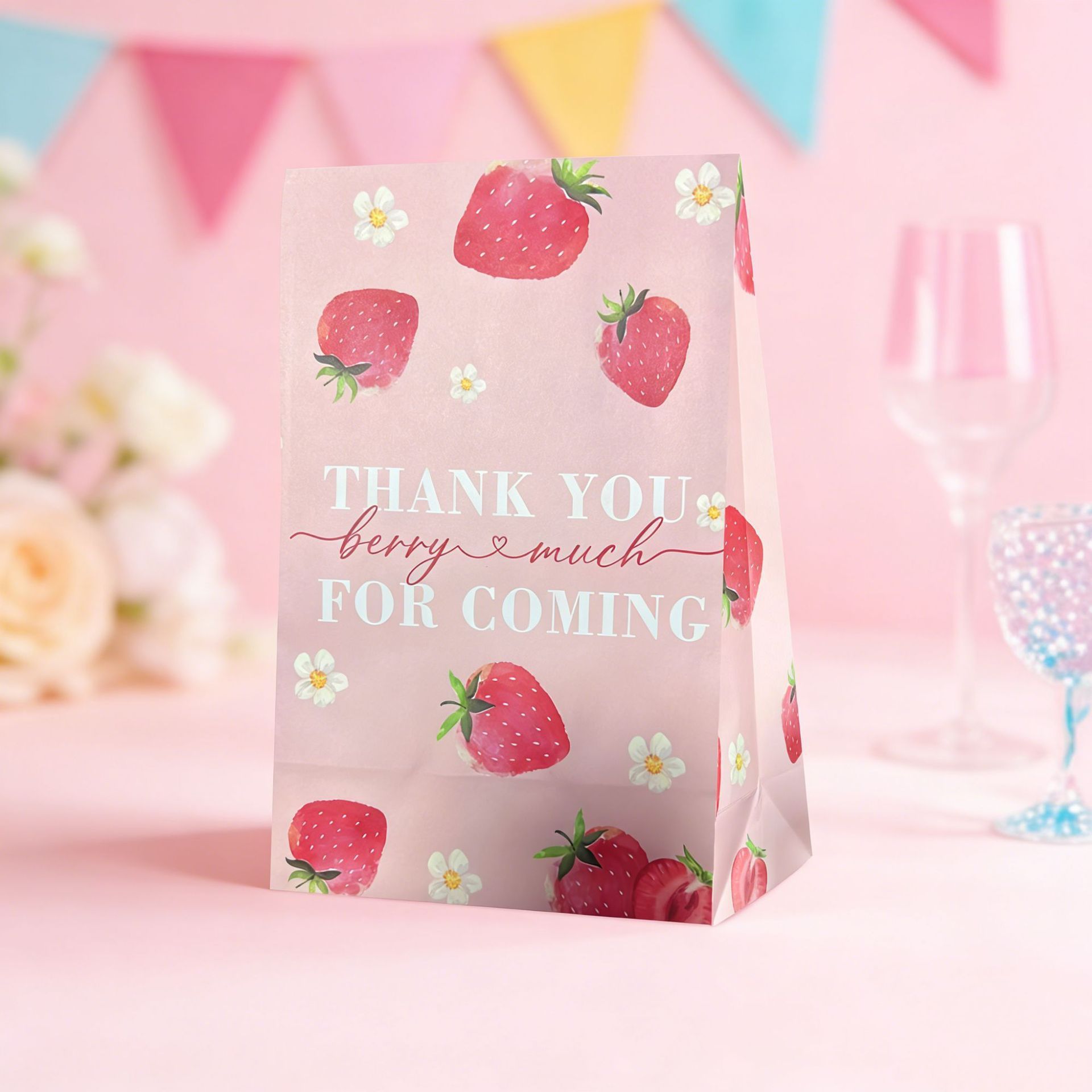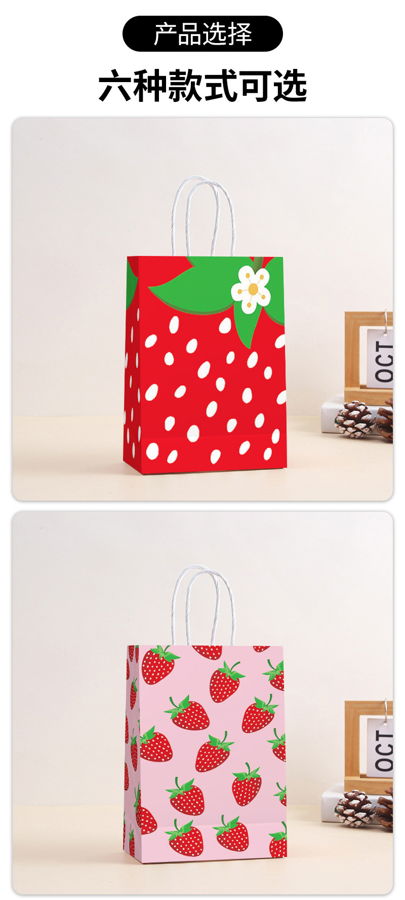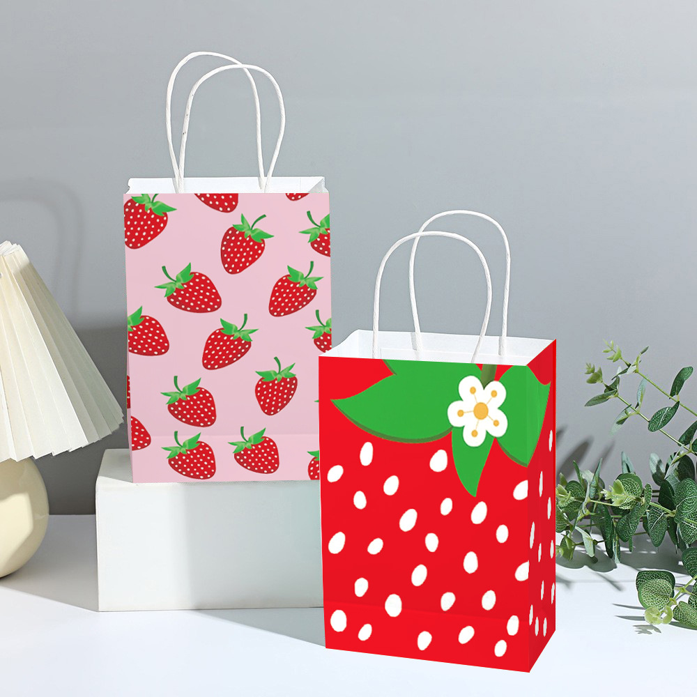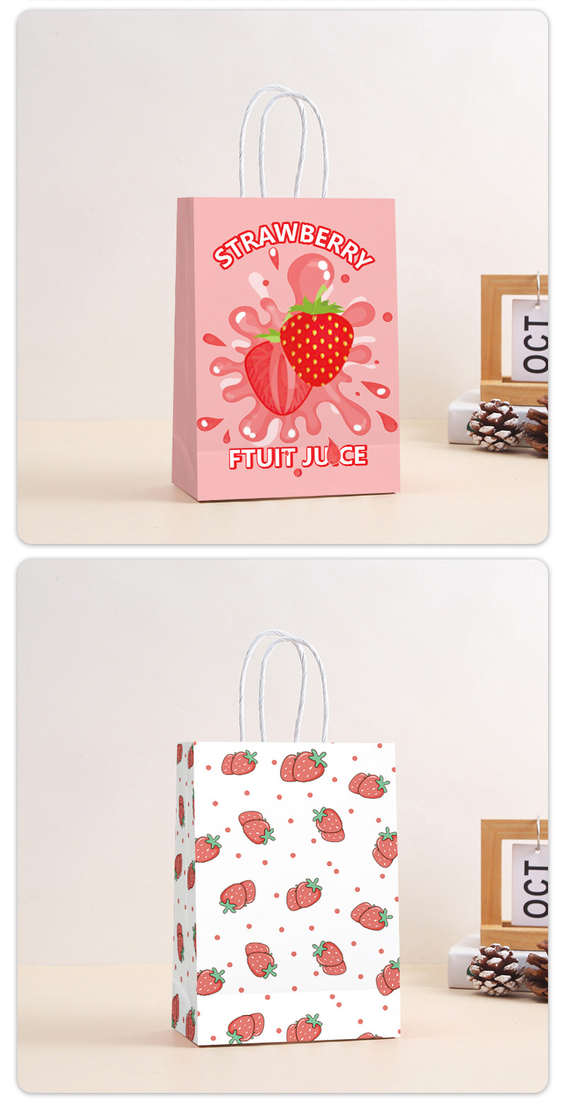 跨境牛皮纸袋草莓礼品袋子手提高级感生日聚会礼物袋高级感礼袋