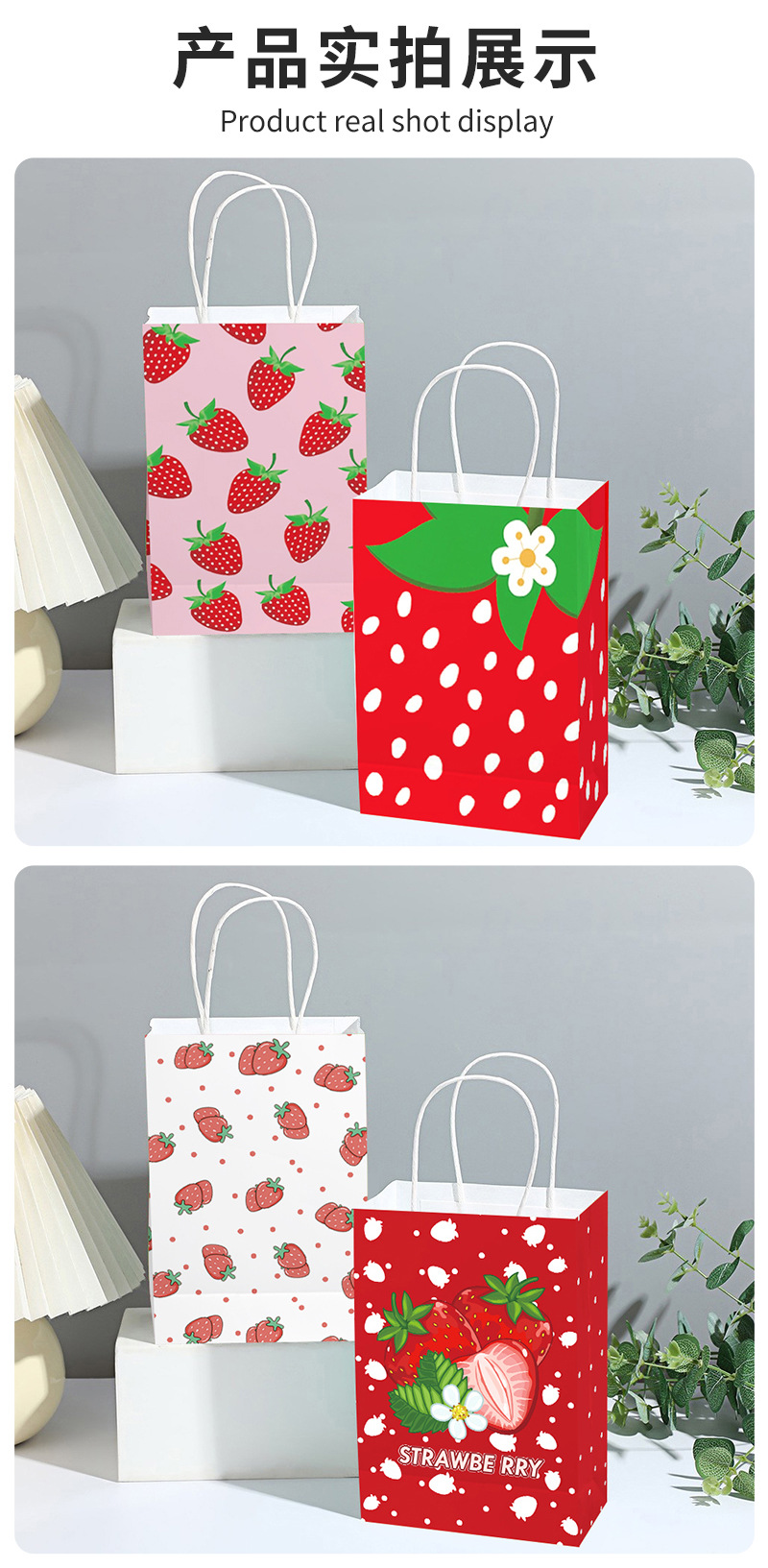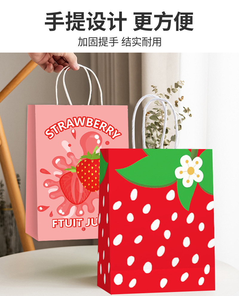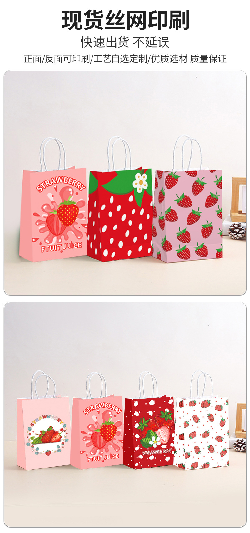 草莓礼品袋高清彩印伴手礼生日礼物包装手提纸袋水果甜品打包袋