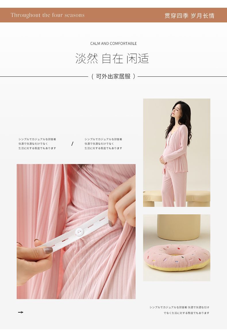 月子服春秋の薄い妊婦の産後の授乳服の純色の甘いモーダルセットの胸パッド付きの家の服