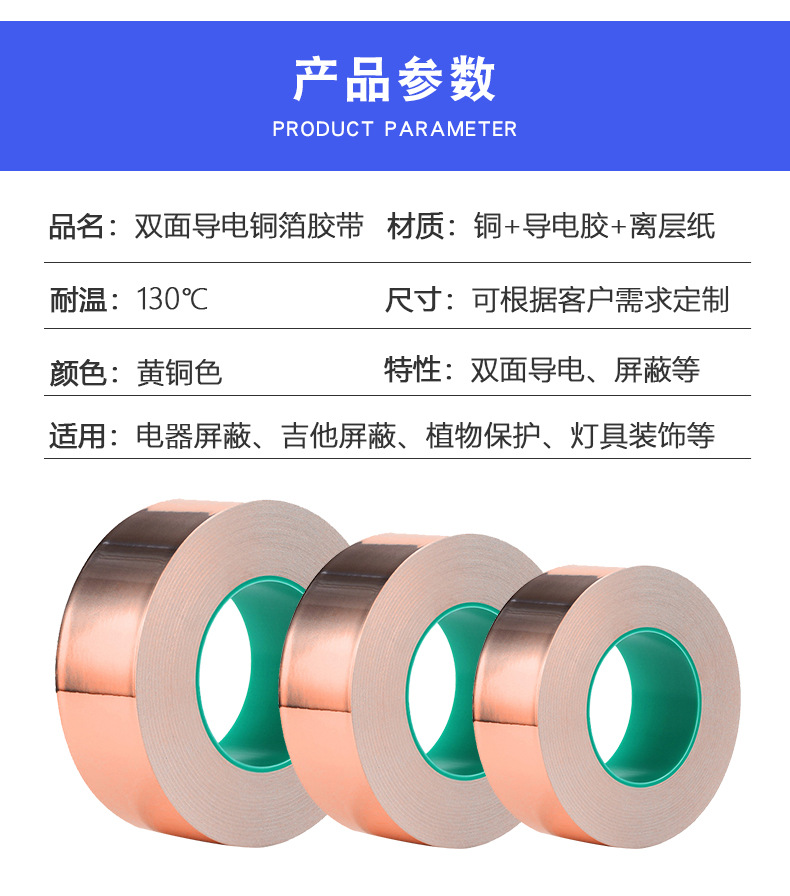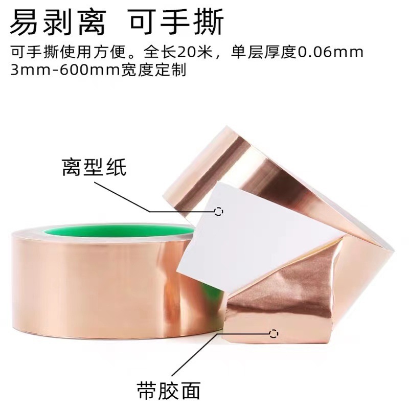 铜箔胶带单双导电背胶自粘铜箔纸单面触摸散热耐高温电磁屏蔽胶带