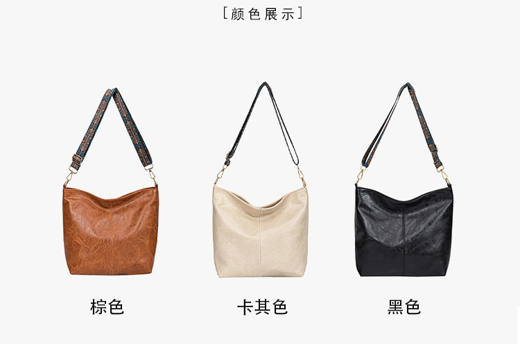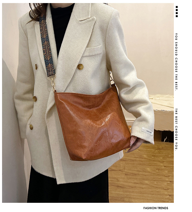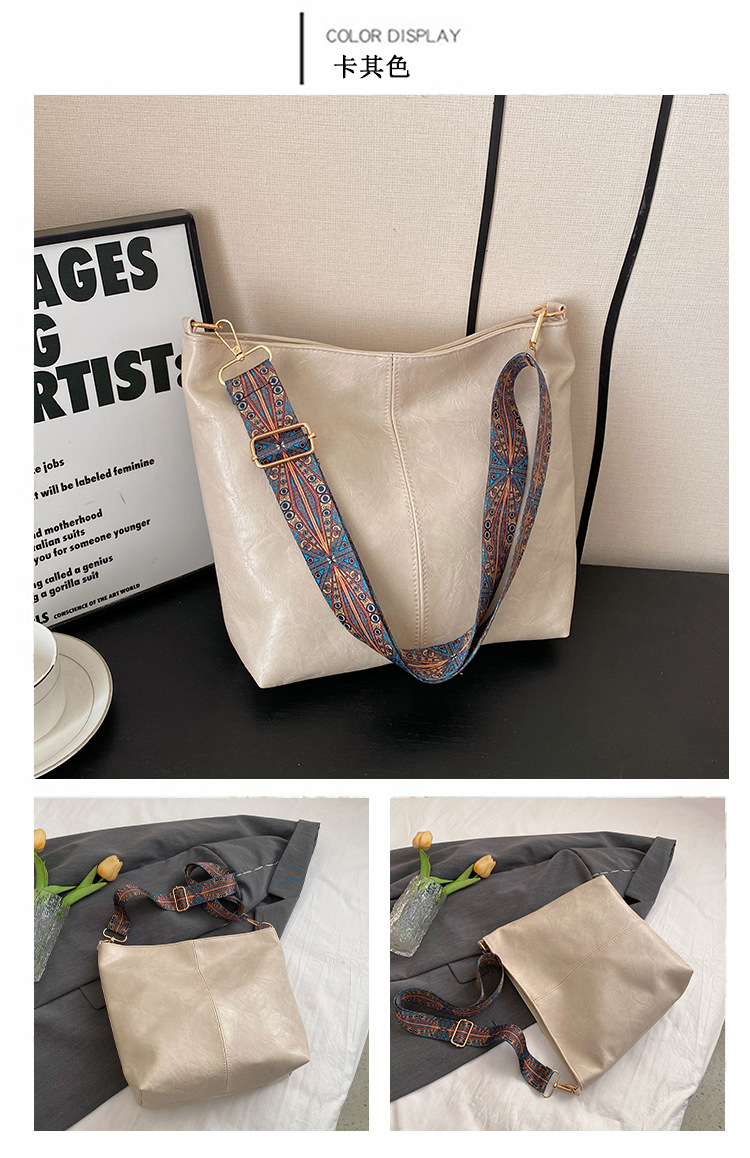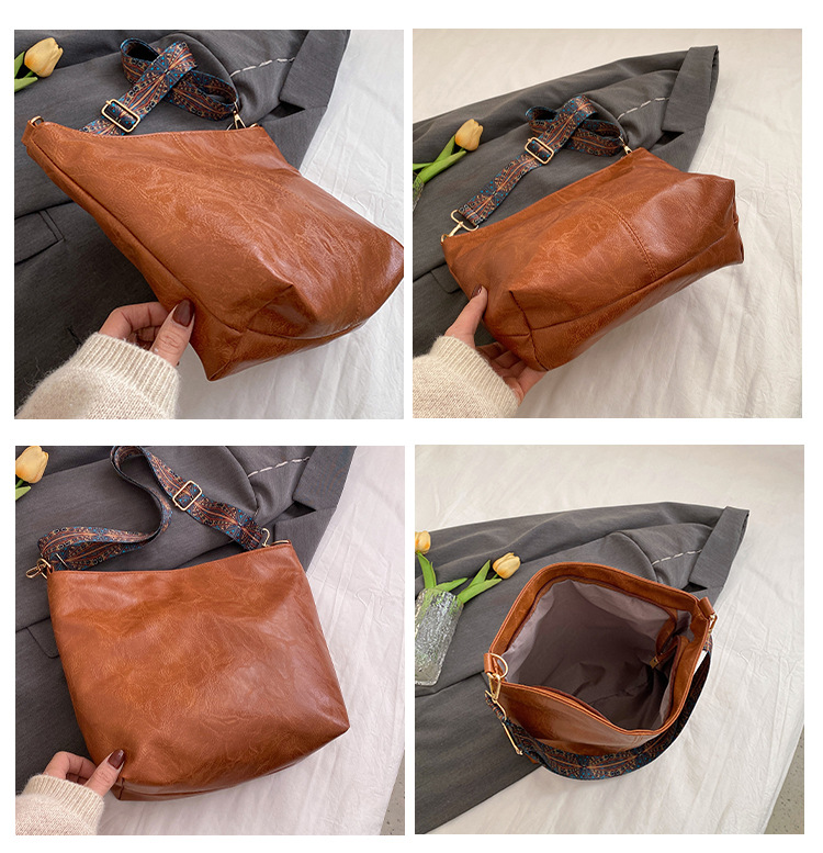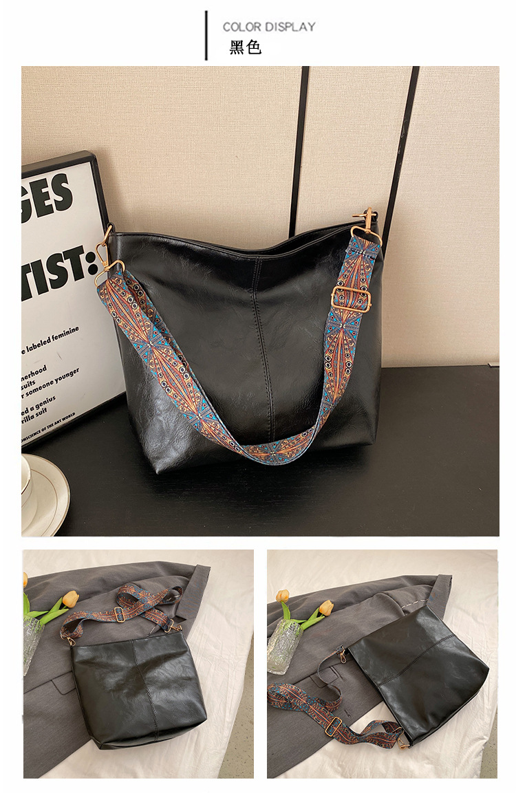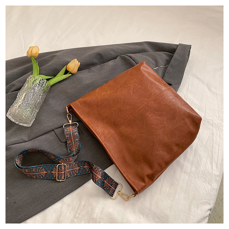 幅広ストラップ付き大容量バッグ レディース 2023 レトロ 孔雀羽ショルダーストラップ オイルレザー ショルダー/クロスボディ 通勤トートバッグ ハンドバッグ