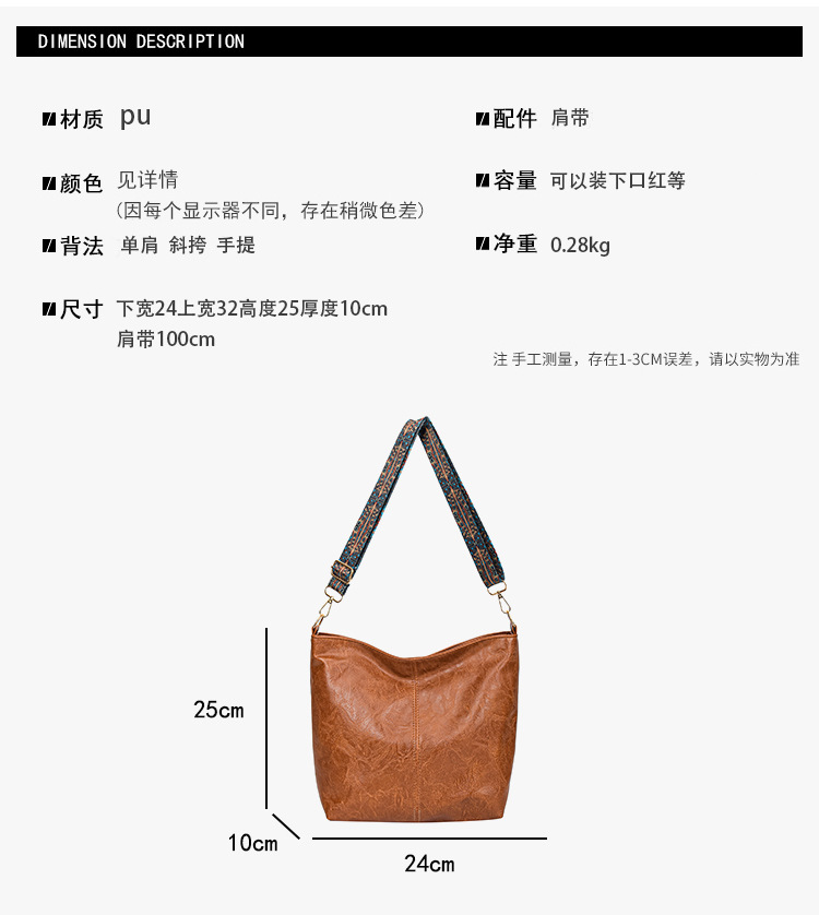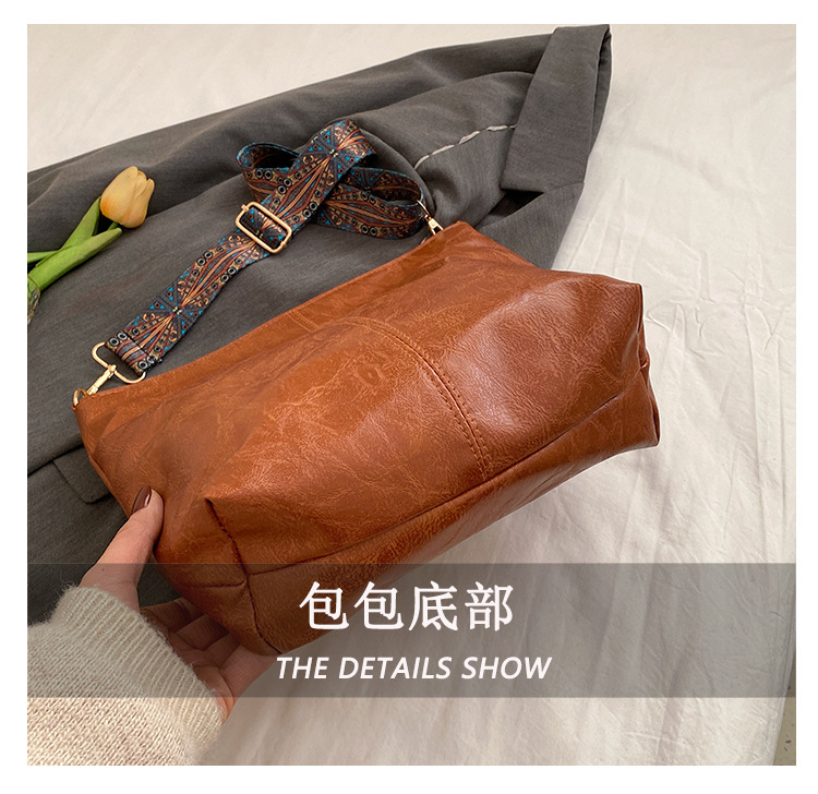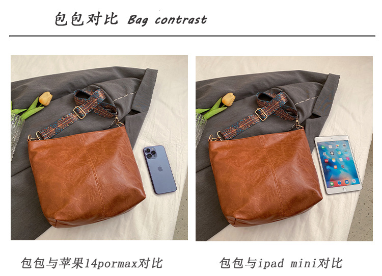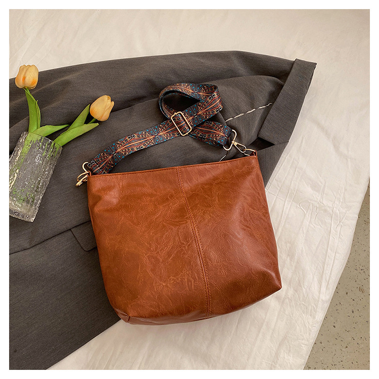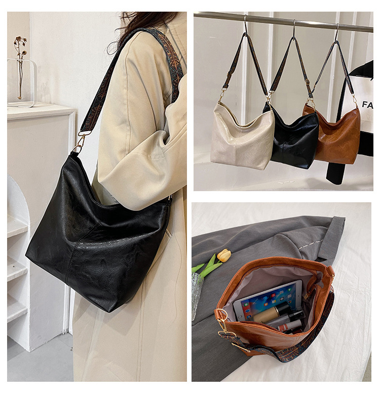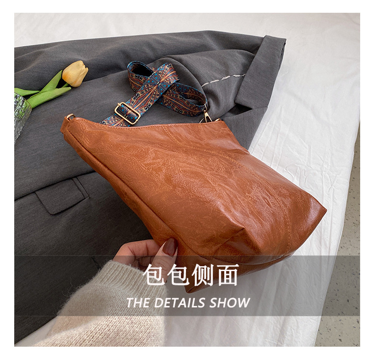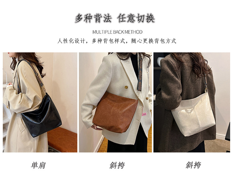 幅広ストラップ付き大容量バッグ レディース 2023 レトロ 孔雀羽ショルダーストラップ オイルレザー ショルダー/クロスボディ 通勤トートバッグ ハンドバッグ