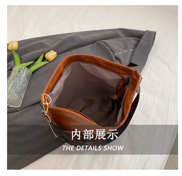 ブロードバンドシングル大容量バッグ 女性用 2023 レトロ孔雀羽根ショルダーストラップ オイルレザー ショルダー/斜め掛け 通勤トートバッグ 多用途