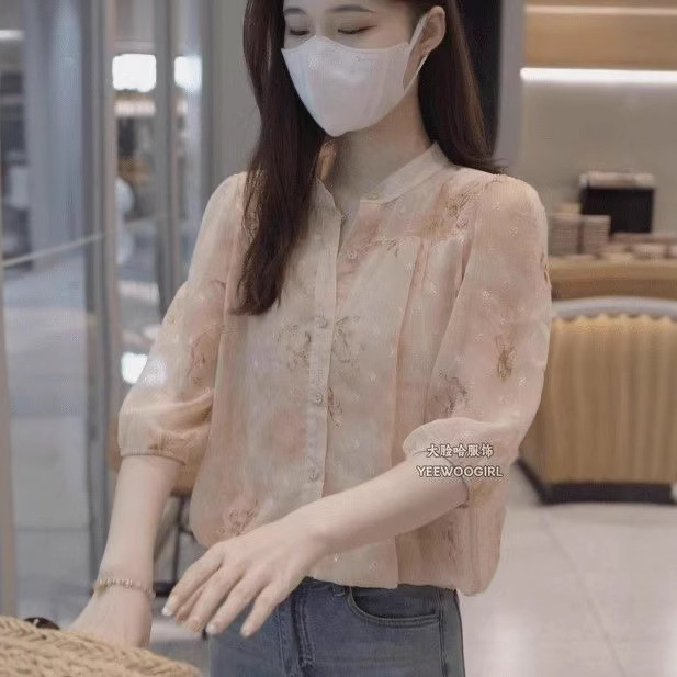 春夏衬衫女薄款夏季新款洋气气质碎花减龄显瘦夏季设计感甜美小衫