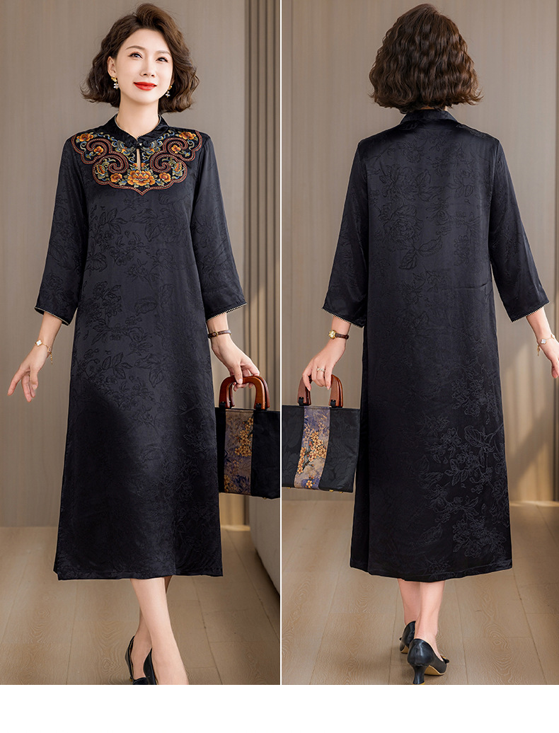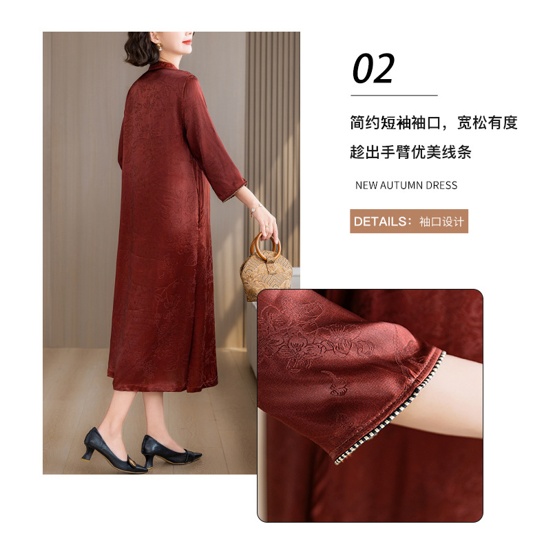 2025春の中年の女性のお母さんの夏服のジャカードの正統の香ばしい雲の糸の復古の長いスカートのワンピース