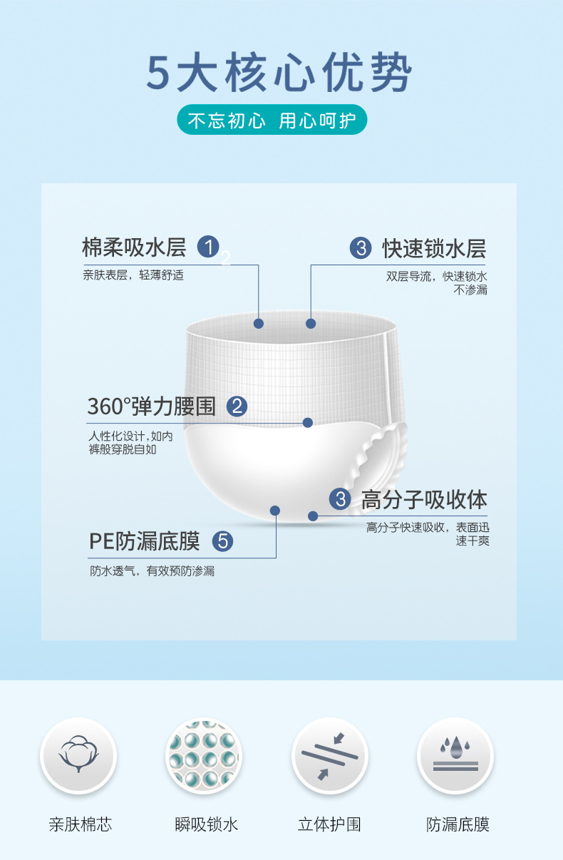 産後女性用大人用おむつパンツ、高齢者用男女兼用ケア用使い捨てパンツ型おむつ、尿漏れ防止