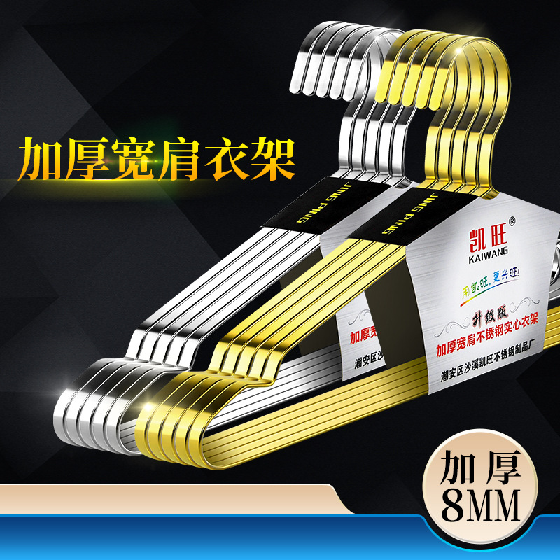 批发304不锈钢扁条衣架加厚8MM防滑衣架实心晒衣架成人衣架晾晒架