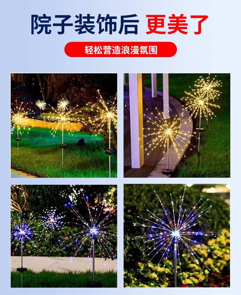 ソーラー花火ライトストリング、フェスティバルパーティーデコレーション、ナイトライト、屋外防水、雰囲気照明、小型カラーライト