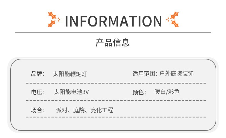 注文番号 ソーラー爆竹グラウンドランプ