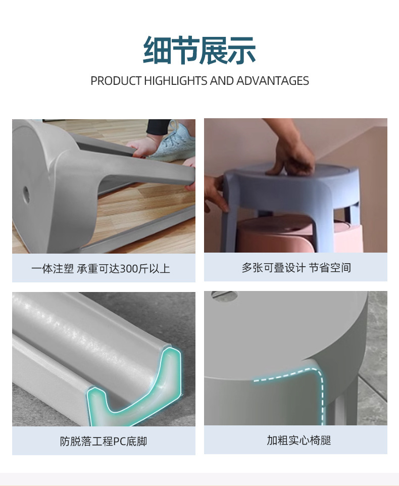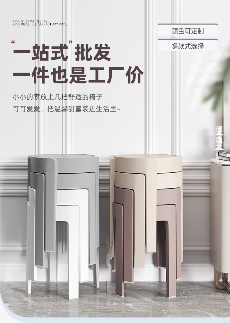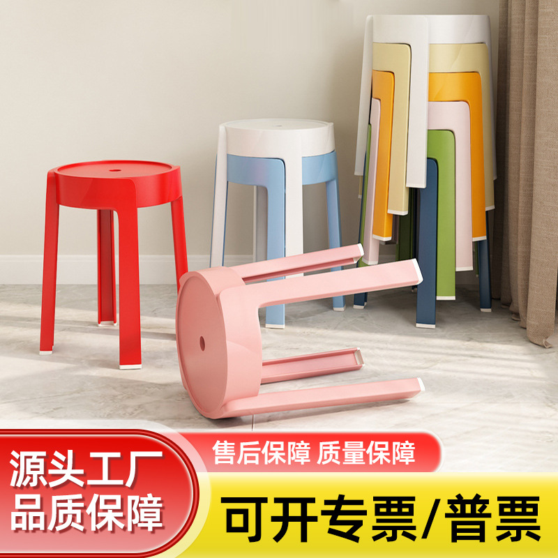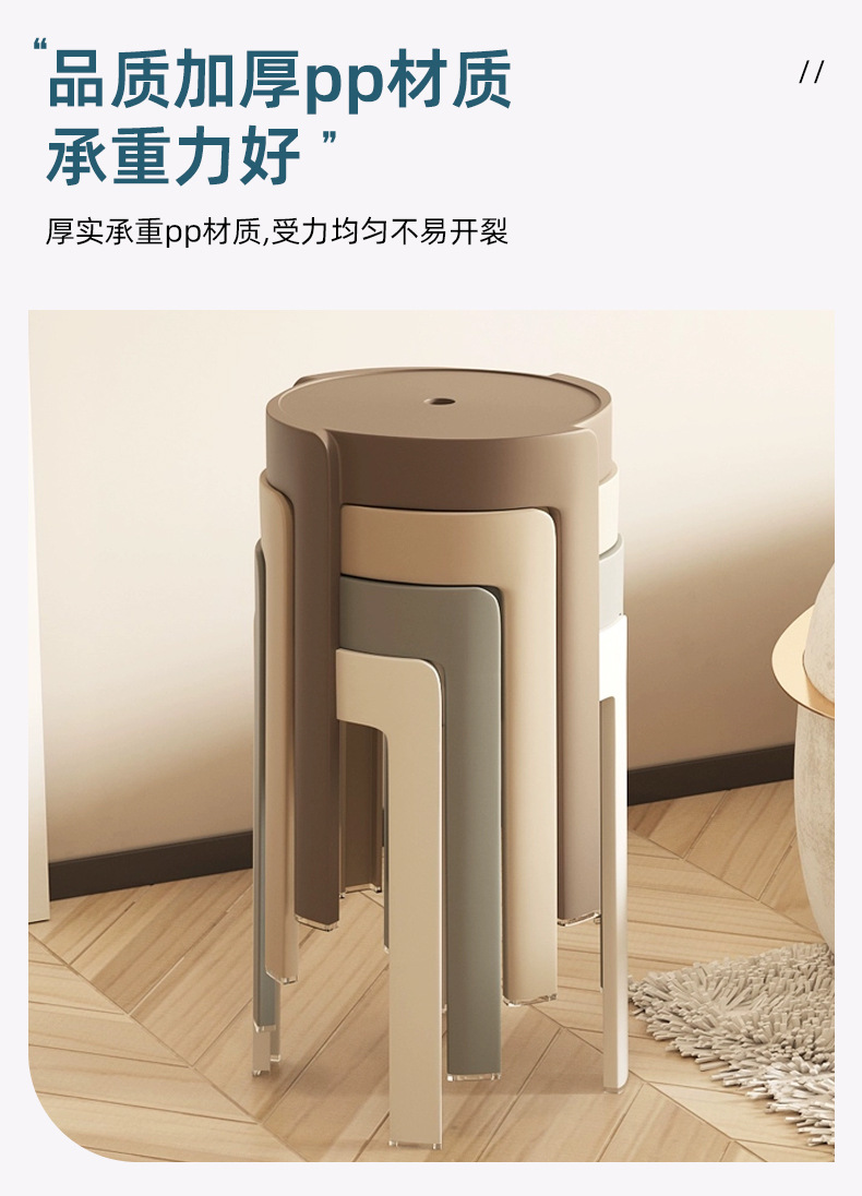塑料凳子家用加厚现代简约可叠放久坐舒适高圆凳客厅餐椅风车凳