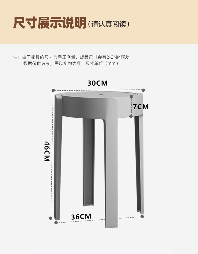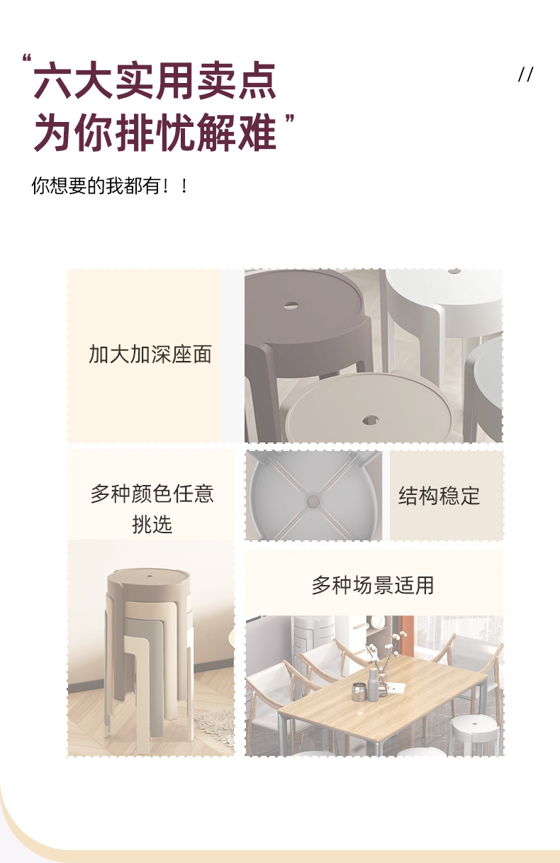 家庭用腰掛けはプラスチックを厚くして積み重ねてテーブルを積み重ねることができます。