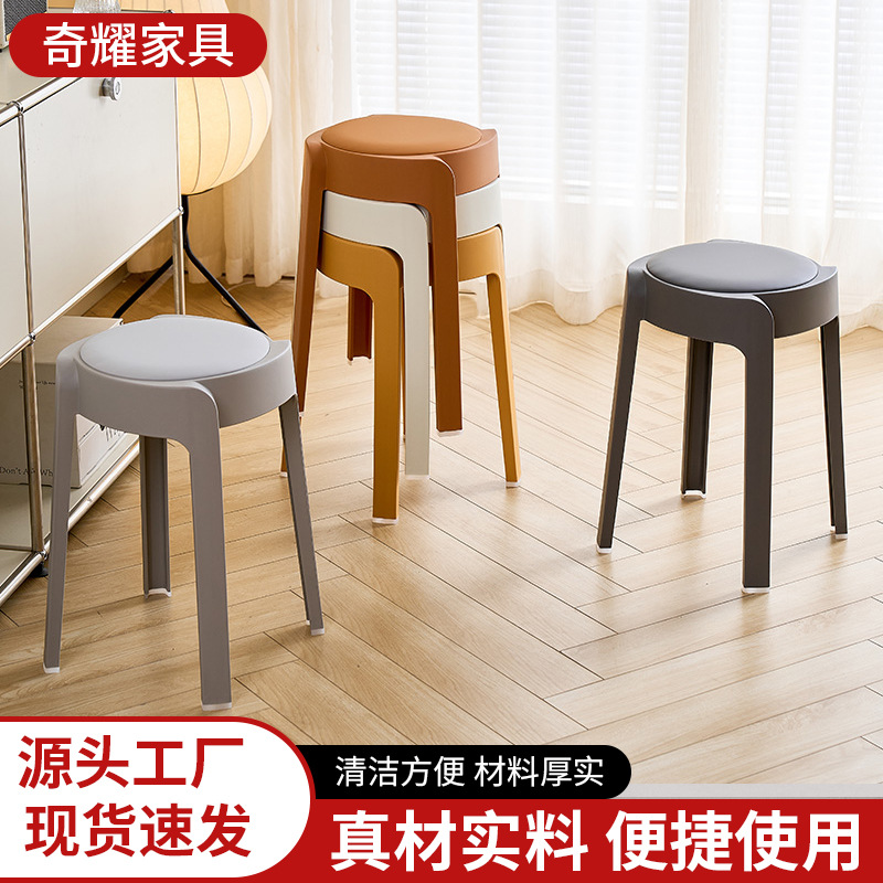 家庭用ソフトパッケージスツール積み重ね可能なレストランダイニングスツールモダンなシンプルなハイスツールリビングルームレジャープラスチックラウンドスツール